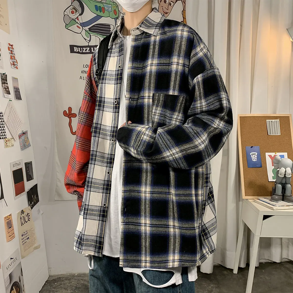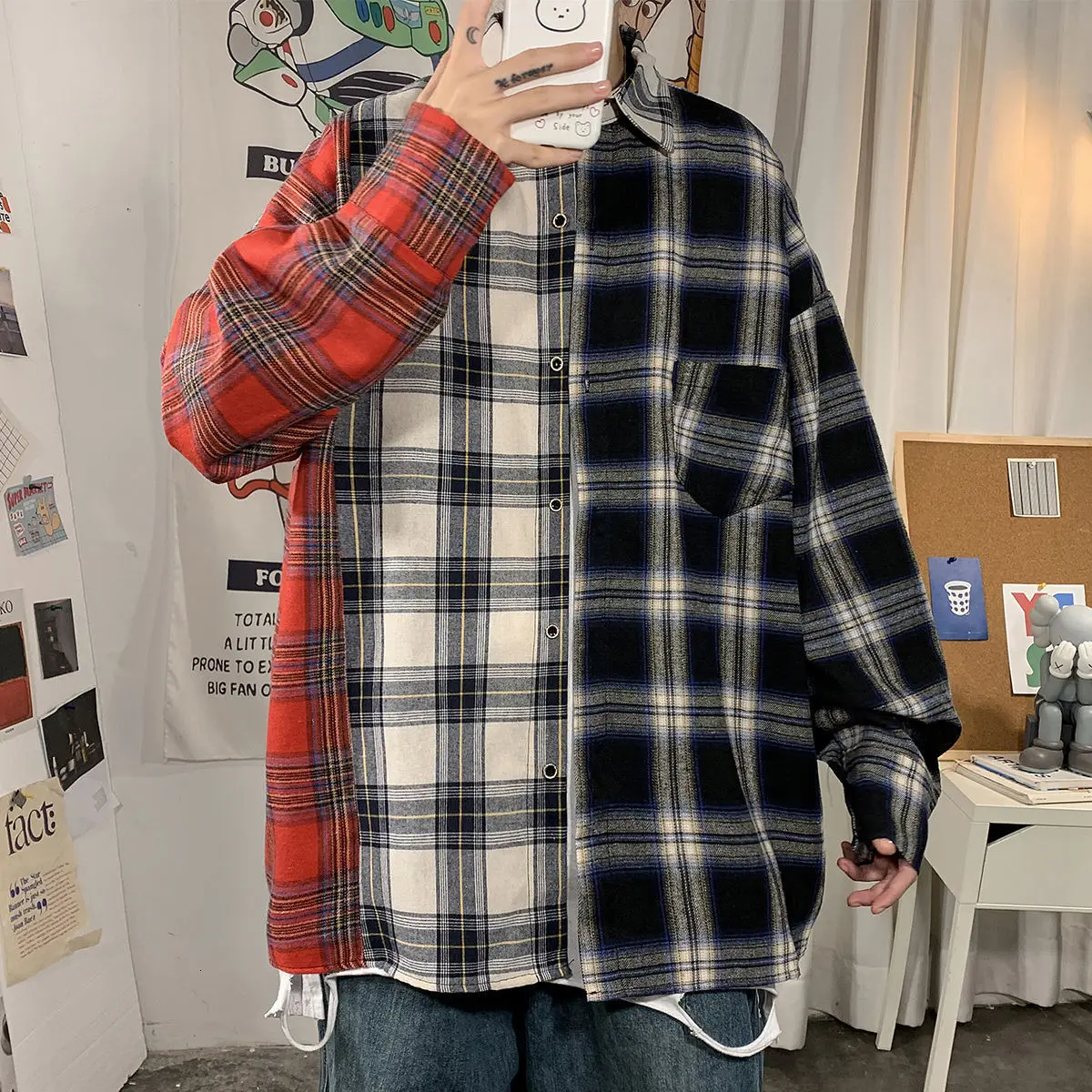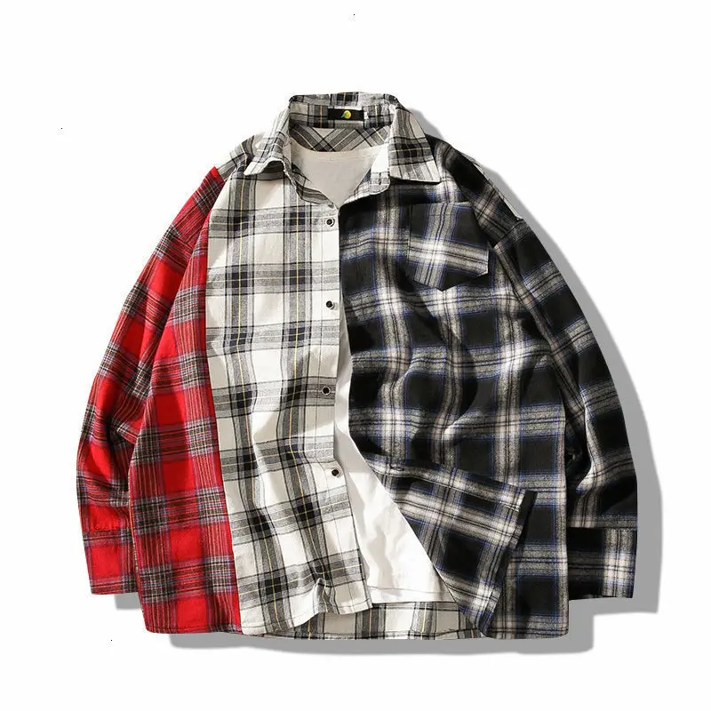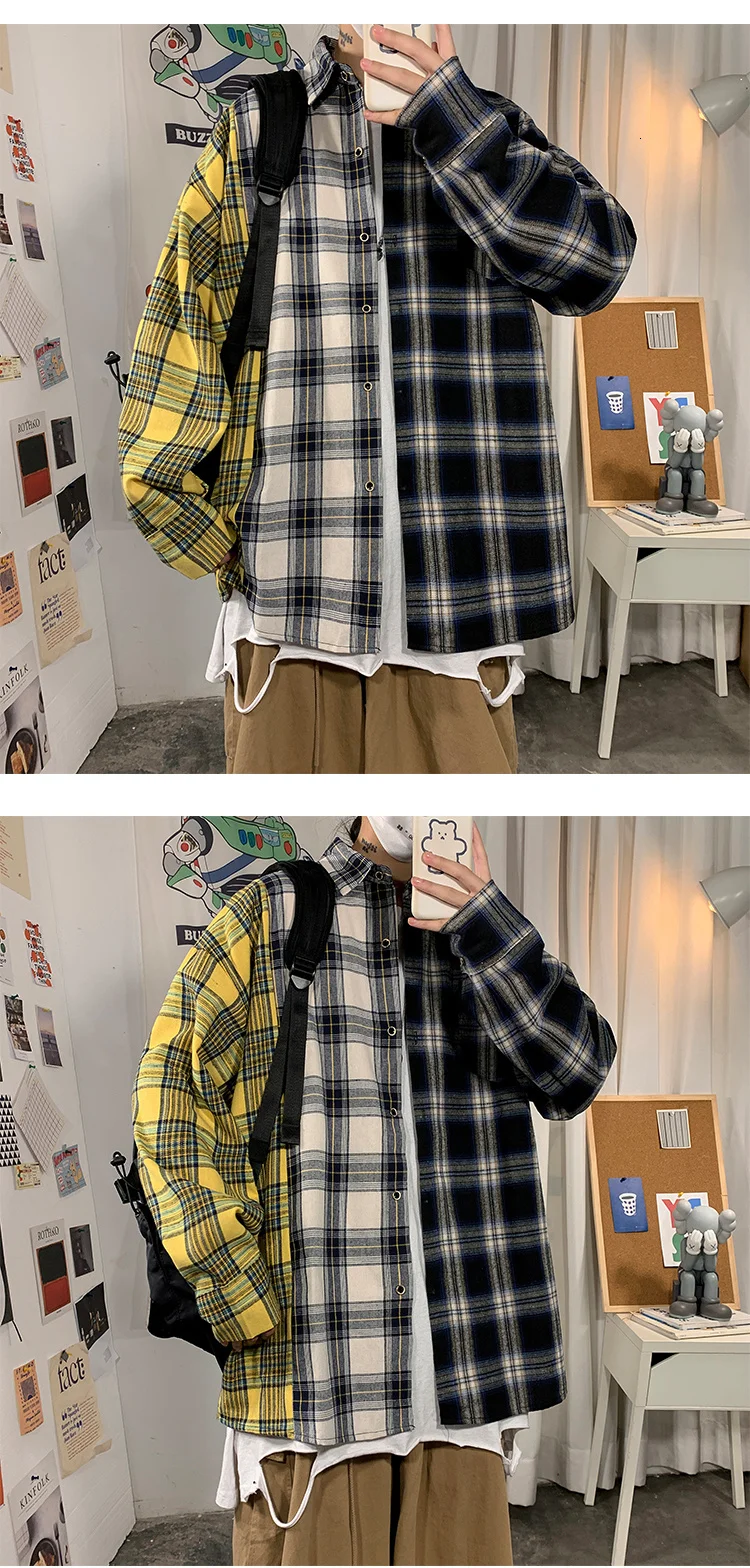 Рубашка мужская повседневная в клетку, уличная одежда в стиле хип-х...