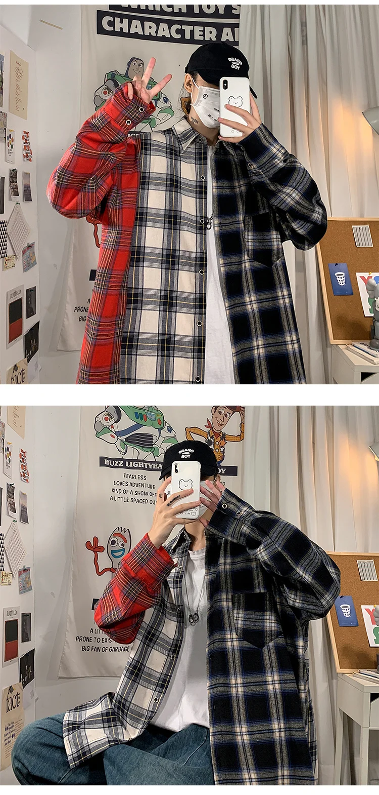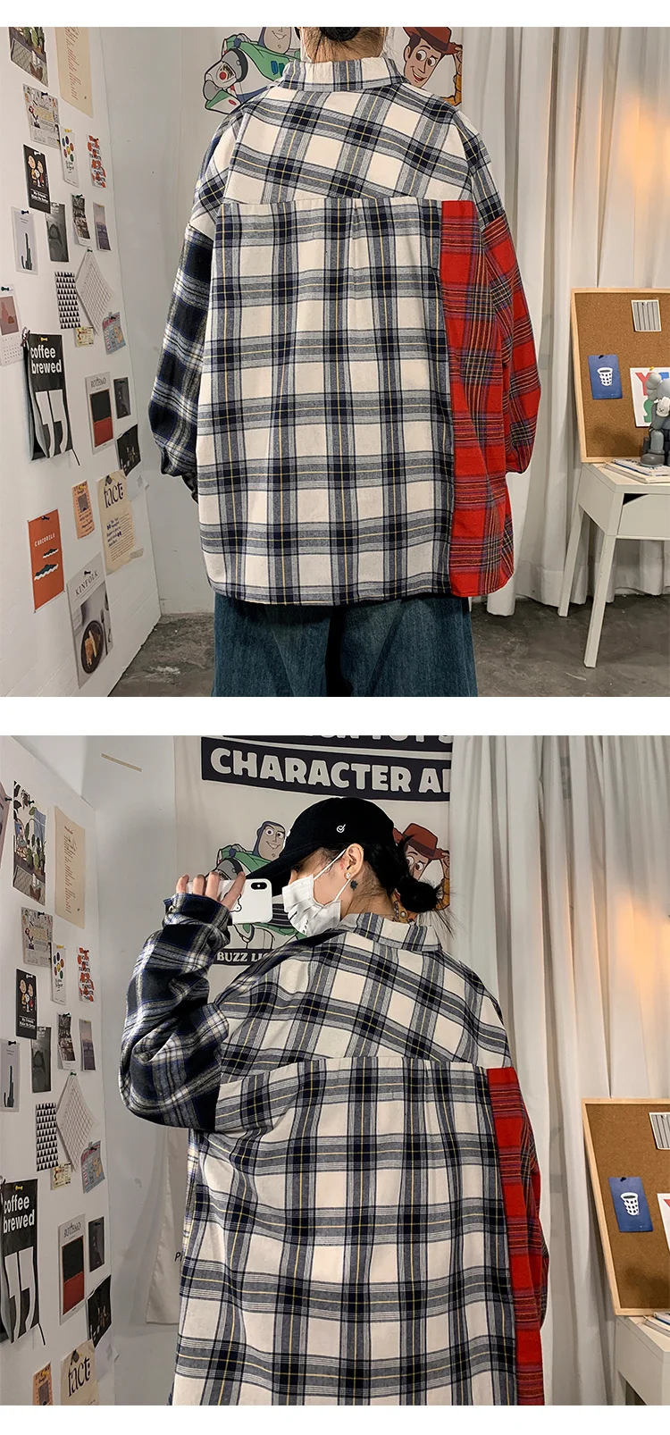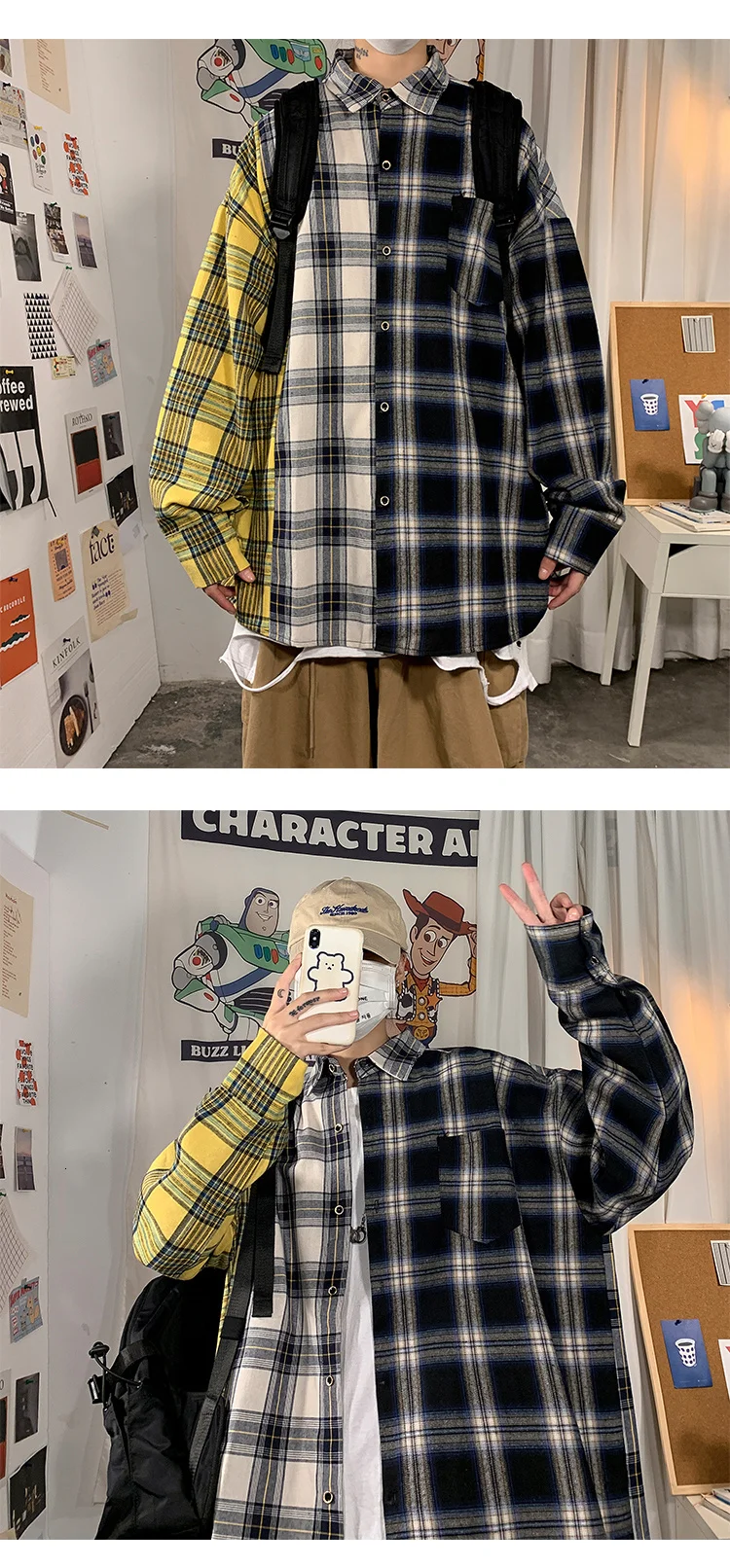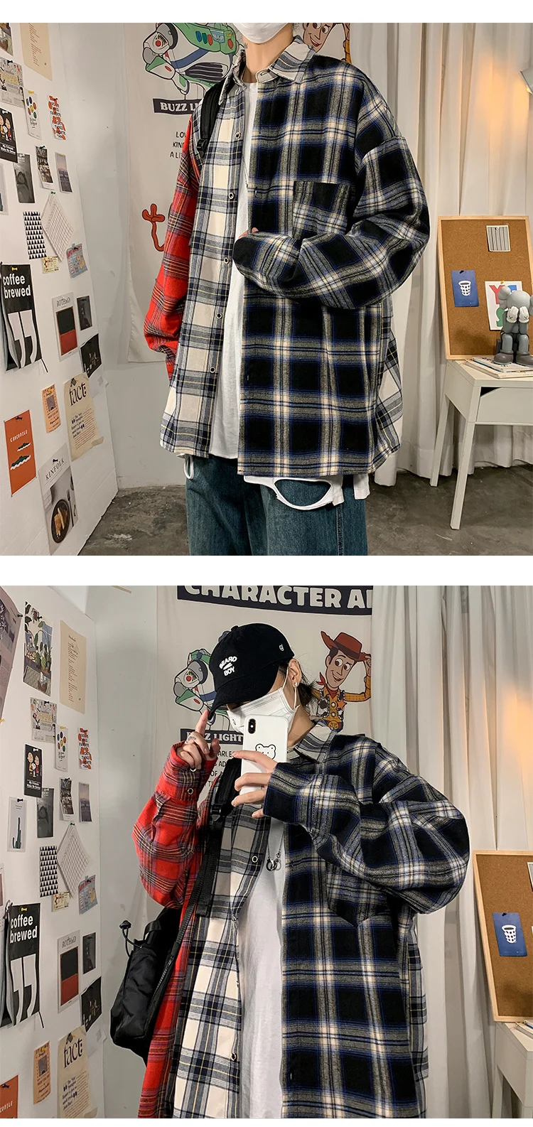 Рубашка мужская повседневная в клетку, уличная одежда в стиле хип-х...