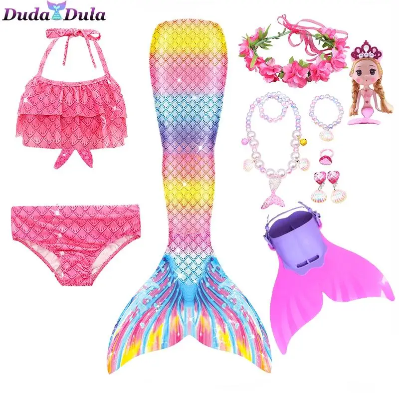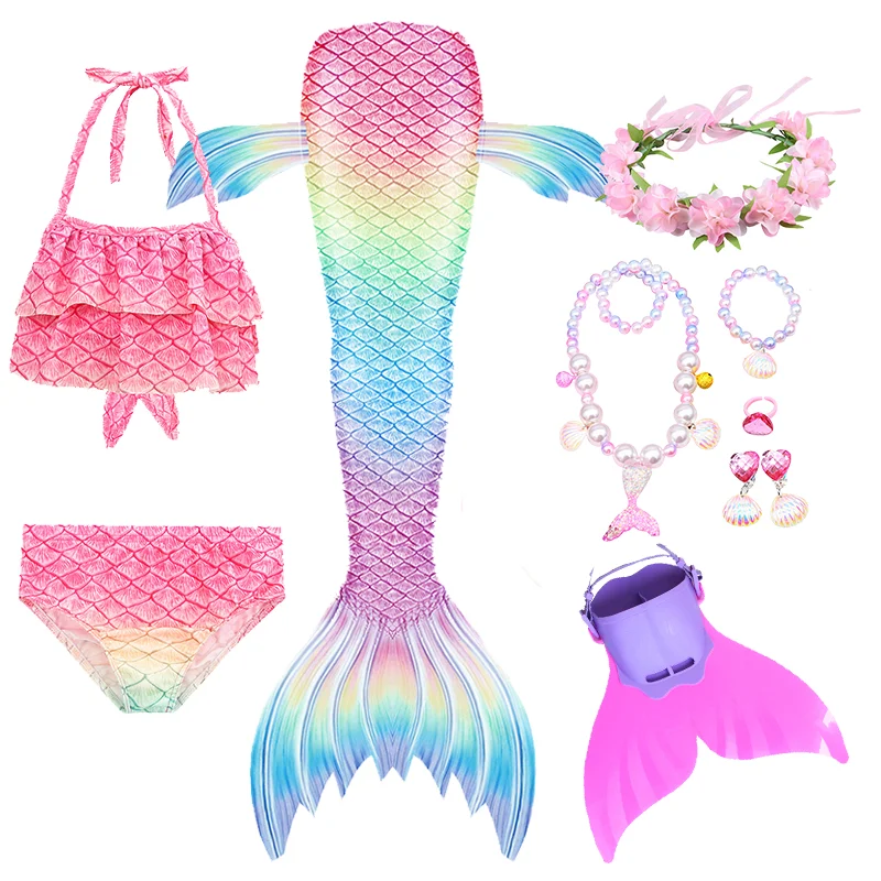 5 шт., хвосты русалки для плавания, костюмы Моноласты для девочек, Детский костюм для косплея на Хэллоуин, комплект бикини Monofin Fin