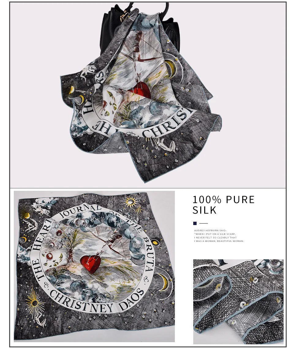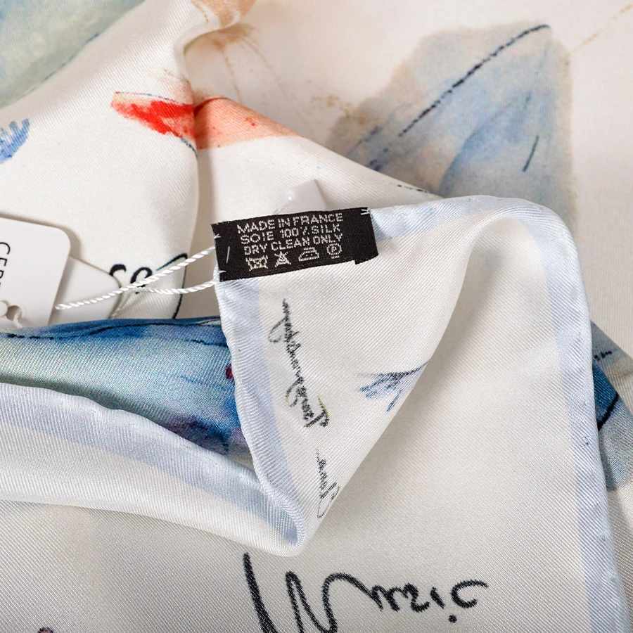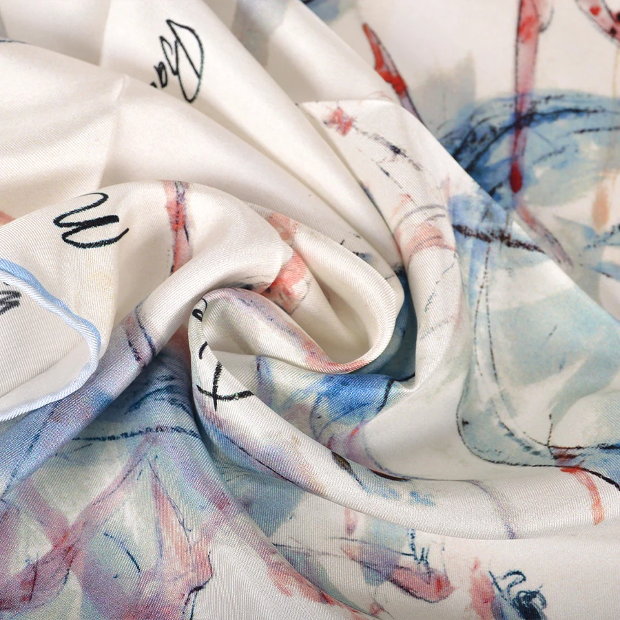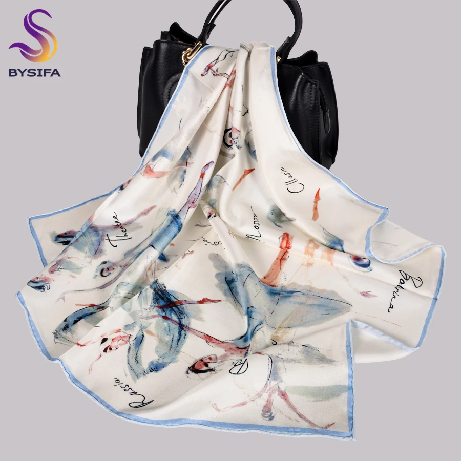 Женский шарф с принтом BYSIFA, Белый Элегантный шарф из 100% шелка с чернилами, квадратный модный брендовый саржевый шарф для балеток на весну и осень