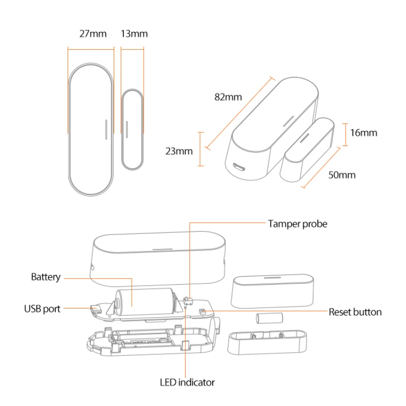 【Обнаружение состояния двери/окна 】когда дверь/Окно открывается или закрывается, устройство срабатывает и нажимает уведомление на телефон.