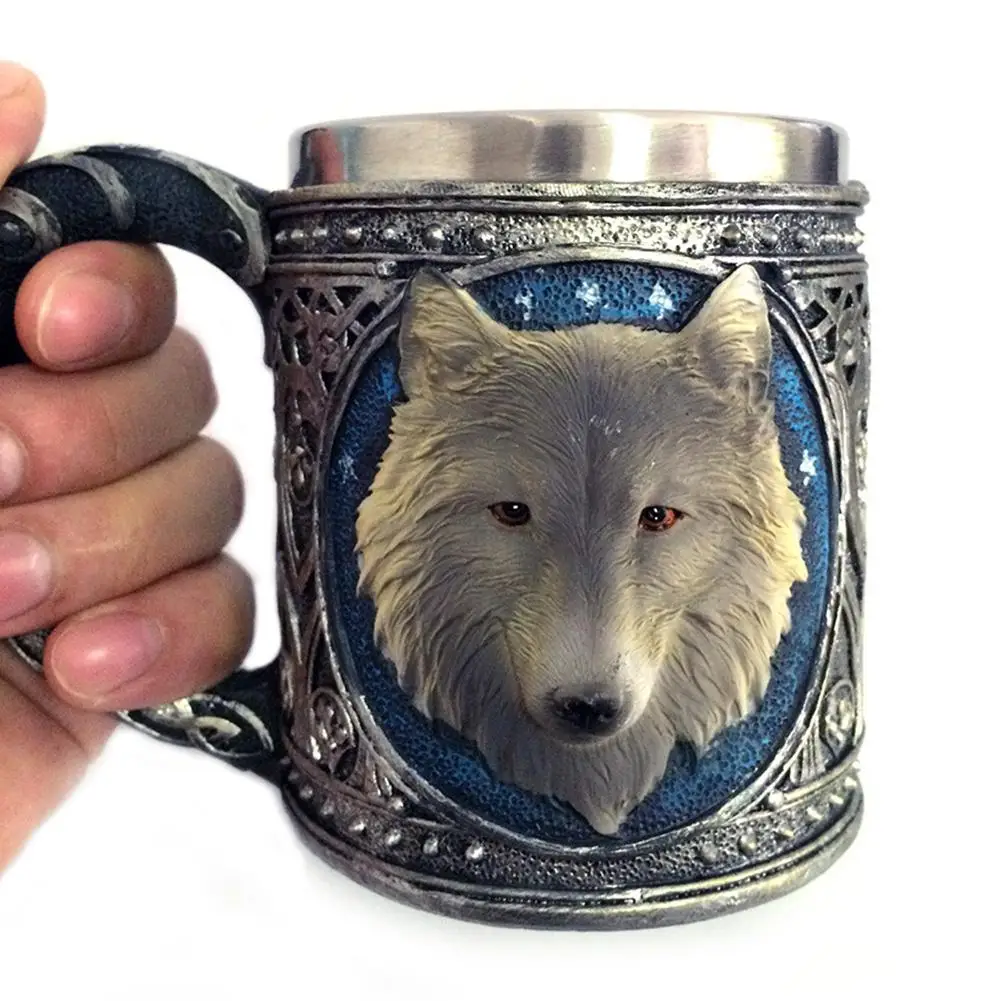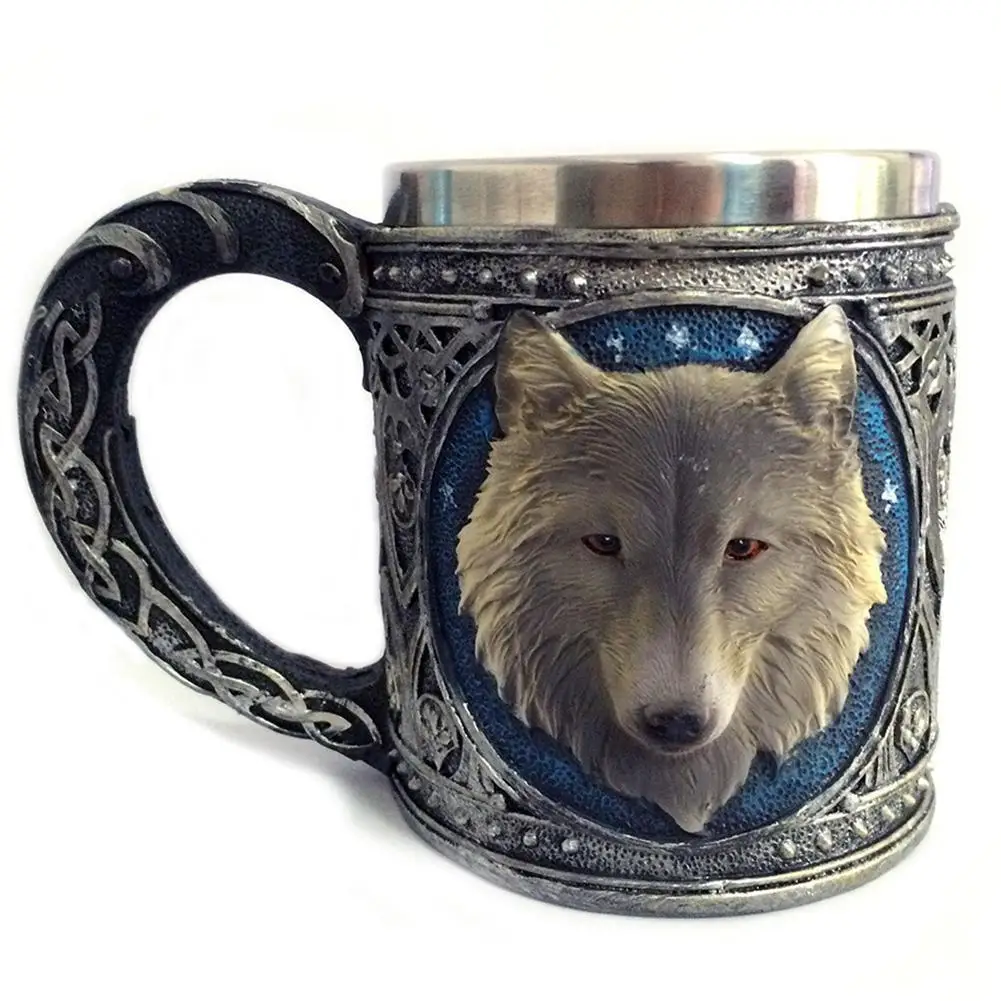 Популярная Ретро кружка с волчьей головой из нержавеющей стали с смолой, семейная Кофейная кружка для дома и офиса, кружка с викингом, чайная кружка, украшение для паба и бара