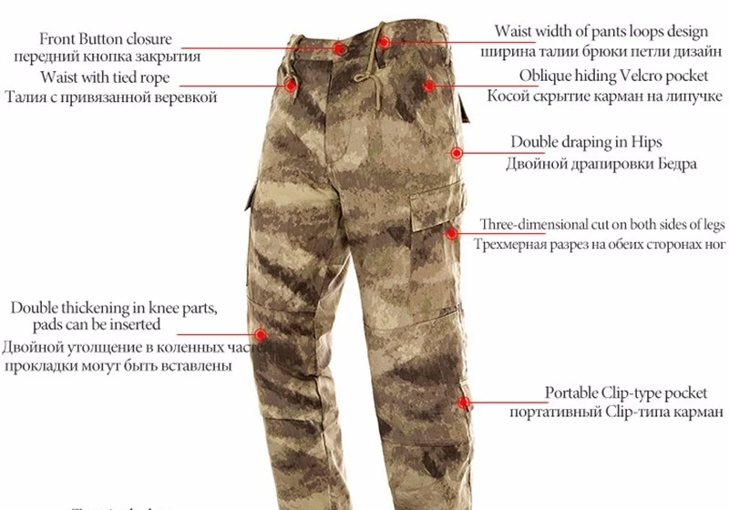 Для костюмов: 1. В воротнике-стойке используется Двусторонняя Липучка для защиты шеи и регулировки плотности для предотвращения ветра. 2. Прочная Высококачественная молния, гладкая и износостойкая, с защитой на липучке, красивая и удобная. 3. Дышащий/износостойкий материал, подходит для походов на открытом воздухе, скалолазания, кемпинга, охоты, CS, тренировок весной, летом и осенью 4. На рукоятках есть наклейки на липучке, и прилагаются любые знаки. 5. Всего 18 липучек, не только практичных, но и спортивных и модных 6. Запонки на липучке, регулируемые манжеты, ветрозащитная и утягивающая конструкция. 7. Есть 13 различных цветов на ваш выбор. 8. Ткань быстро сохнет и легко чистится, не выцветает 9. Изысканное мастерство, воздухонепроницаемый Бур, без игольчатого кольца 10. Дизайн с несколькими карманами, всего 6 воздушных карманов на липучке: 2 спереди, 4 на рукаве, большая вместимость и более безопасная 11. Двухслойные сверхтолстые налокотники, более толстые и износостойкие. Для брюк: 1: дизайн с несколькими карманами, всего 8 карманов: включая 4 кармана на липучке (2 кармана большого размера), 2 кармана на кнопках на бедрах, большую вместимость и более надежный 2: Есть 3 способа завязать ремень: Галстуки, пуговицы и ремни, которые можно отрегулировать по размеру, чтобы предотвратить попадание комаров. 3: регулируемые штанины (включая шнурок) 4: ткань быстро сохнет, легко чистится и не выцветает 5: двухслойная коленная ткань, более прочная 6: Для получения дополнительной информации, пожалуйста, свяжитесь с нами напрямую. Упаковка 1 комплект (пальто + брюки) Дополнительно Шляпа такого же цвета (консультации по покупке шляпы в службе поддержки клиентов)