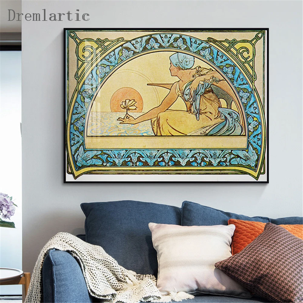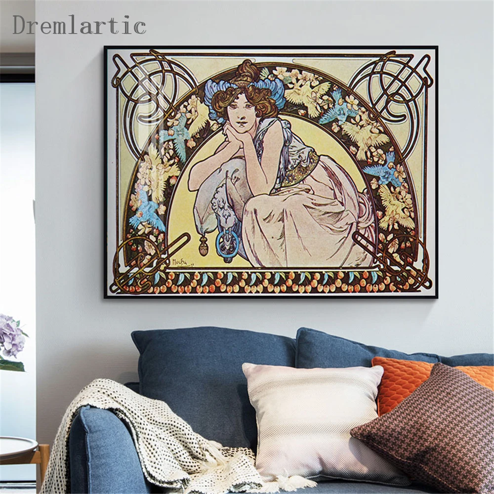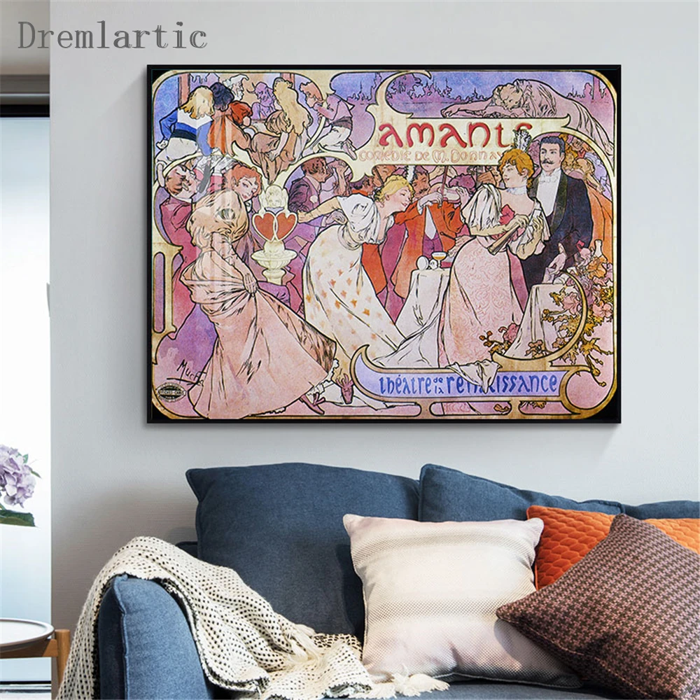 Альфонса Мухи вместе @ t холст постер из шелковой ткани современный Стиль принты вечерние дом Декор #21-0113-9