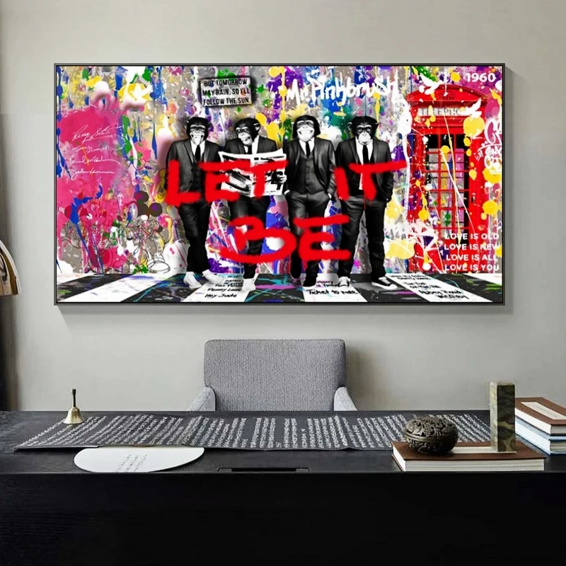 Постеры на холсте Пусть это быть джентльменом, настенные художественные плакаты с обезьянами и принтом современных граффити, картины с животными, домашние картины