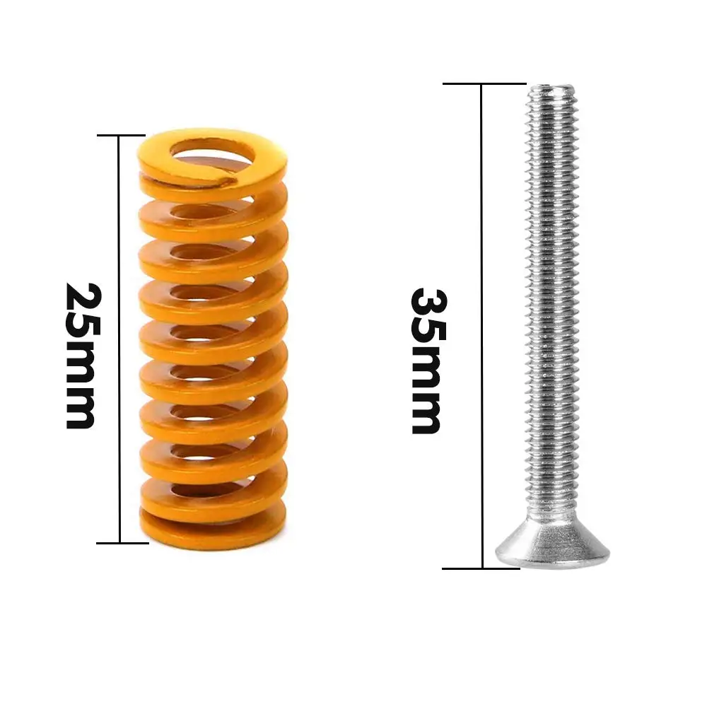 Примечание 1: пружины длиной около 25 мм, что больше, чем у принтеров ender 3, ender 3 pro и ender 3 v2. Вы можете использовать инструмент, чтобы сократить его, чтобы быть короче, если вам действительно нравится этот продукт или настроить горячую кровать, чтобы быть выше, чтобы соответствовать пружинам.Примечание 2: длина винтов составляет 35 мм, если винты для принтера 40 мм, пожалуйста, отрегулируйте горячую кровать ниже и повторите выравнивание для печати.Модернизированная алюминиевая гайка для ручного скручивания делает горячую кровать более стабильной и упрощает выравнивание платформы печати.Для Ender 3/3 Pro/3 X/3 V2, Ender 5/5 Plus/ 5 Pro, CR-10, CR-10 V2, CR-10 Max, CR 10, CR-10 Mini, CR-10S, CR 10S Pro, CR-10 Plus, CR-X/X Pro, CR 20 100% абсолютно новый, высокое качество.