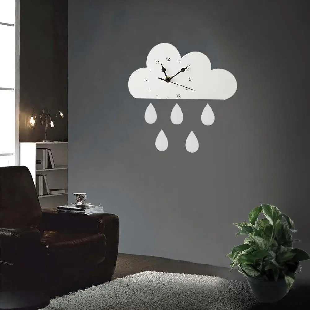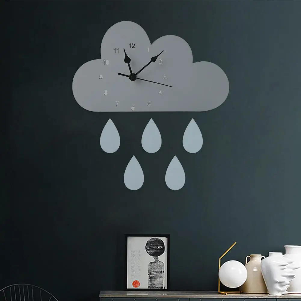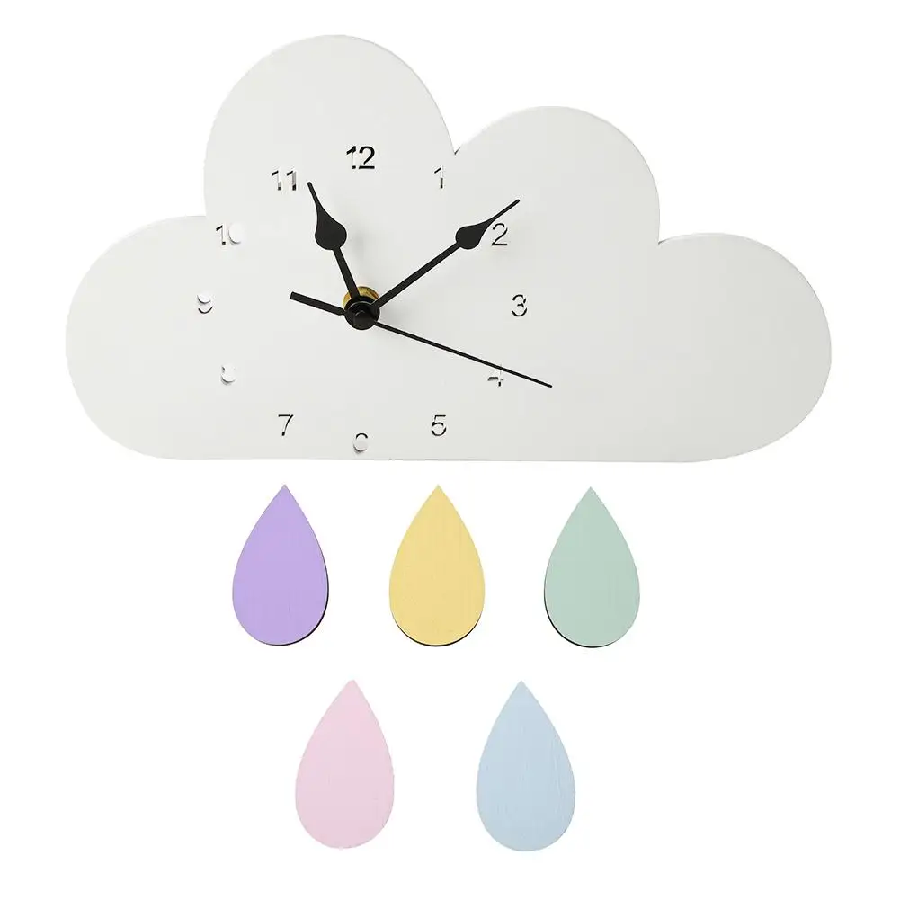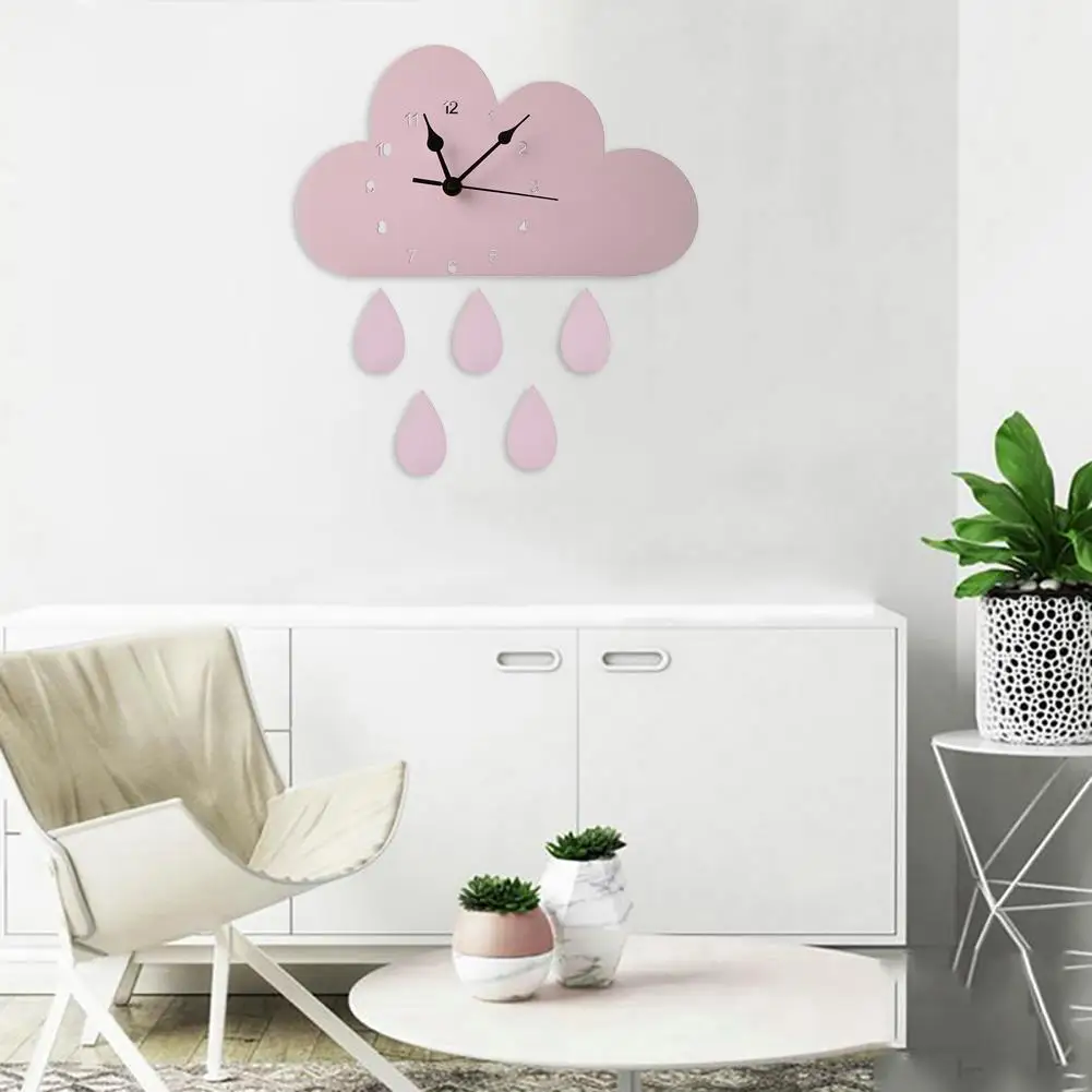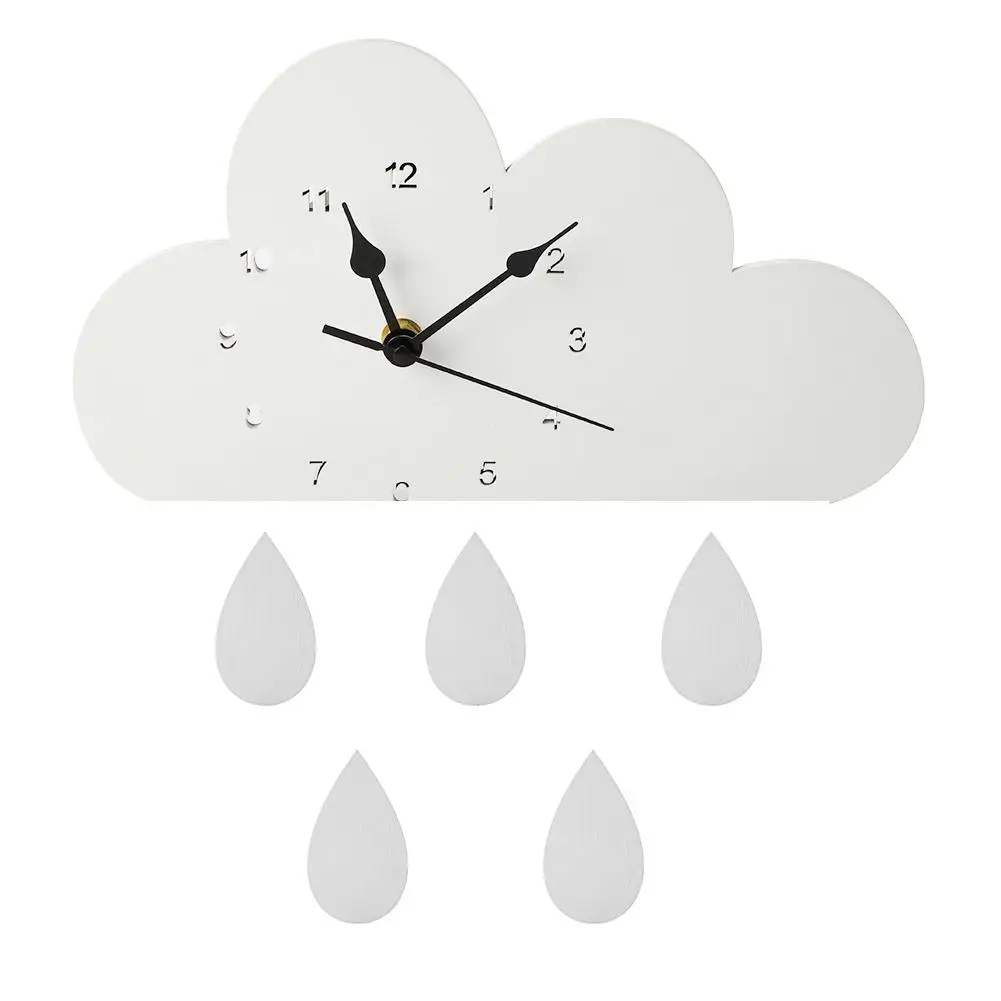 Настенные часы в скандинавском стиле, деревянные в форме облака, капли дождя, декор для детской комнаты, нейтральные, для детского пола, украшение для комнаты