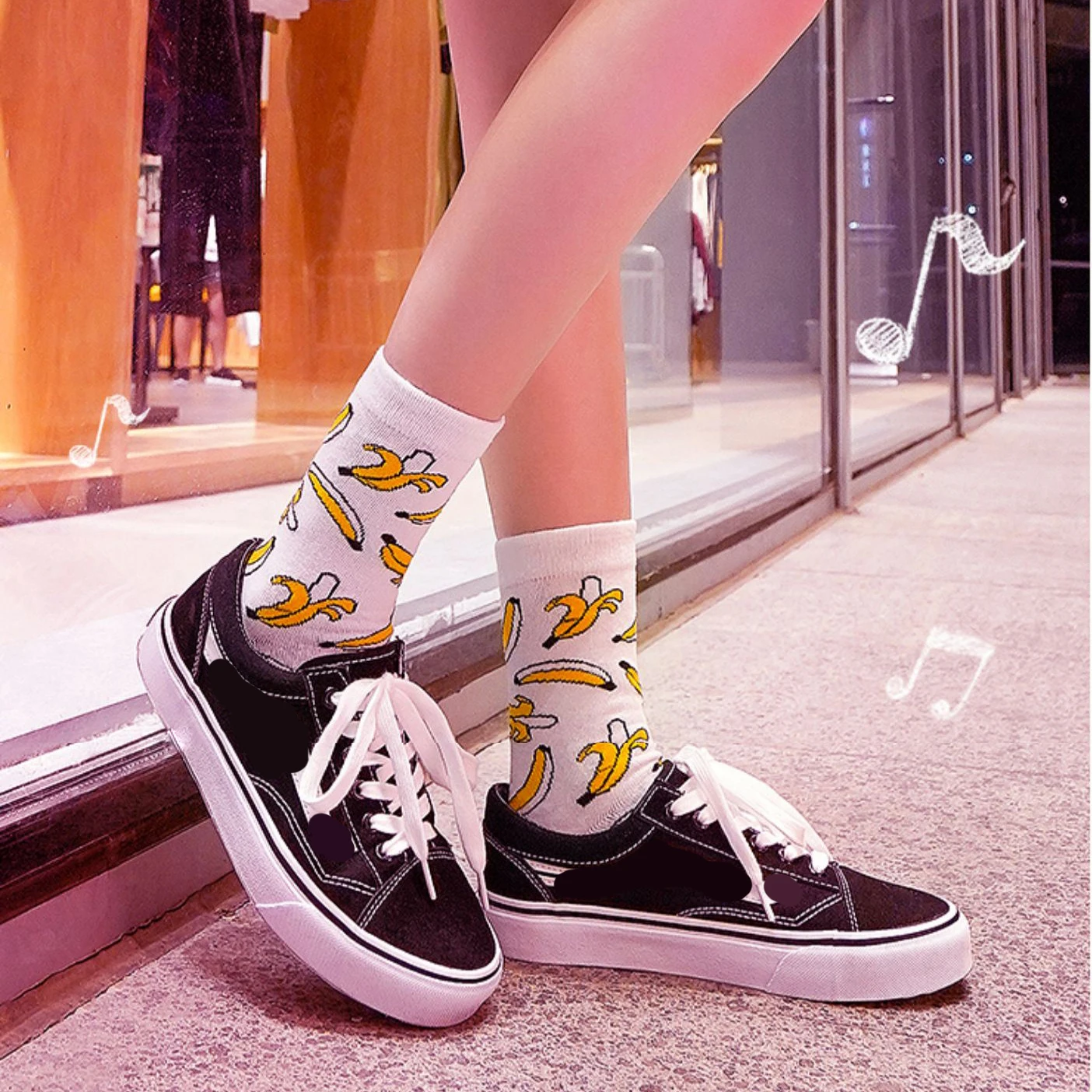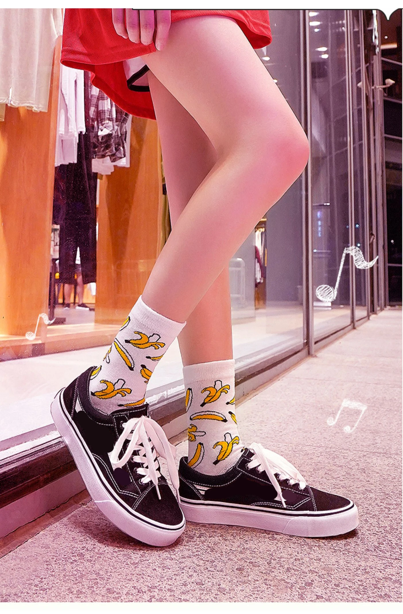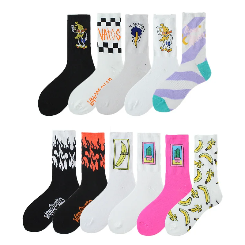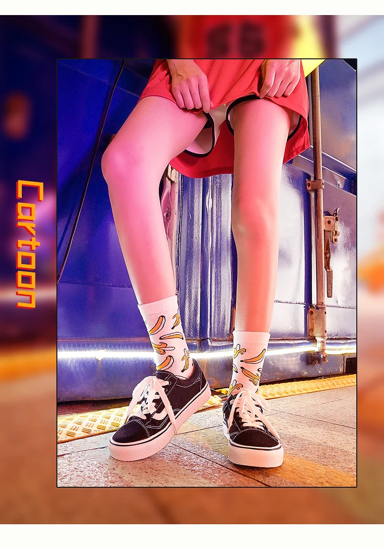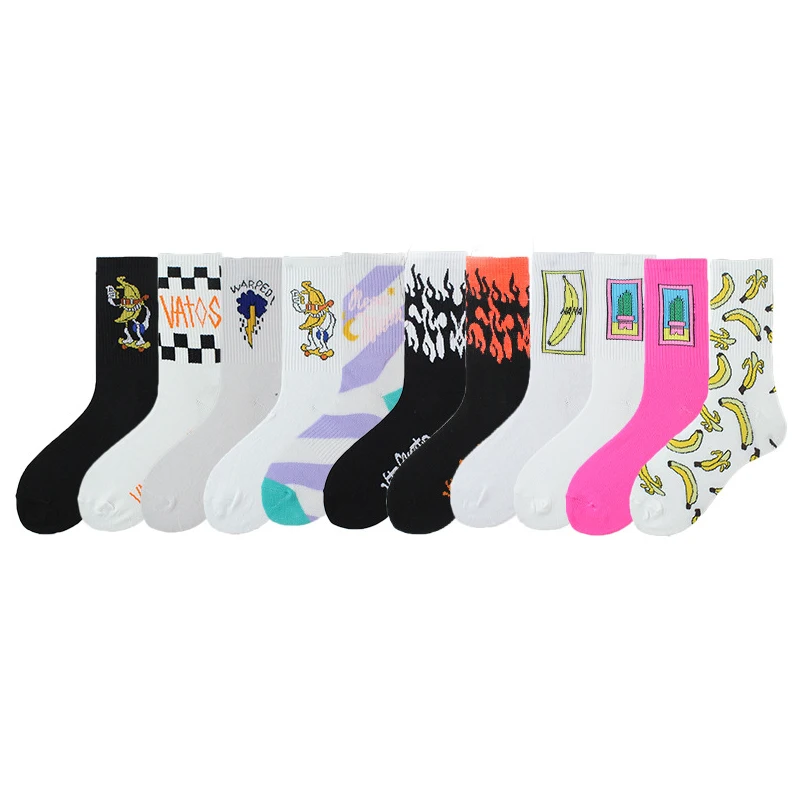 Носки унисекс хлопковые для скейтборда, смешные полосатые с рисунком кактуса, Луны светильник пламени, фруктов, еды, банана, счастливые мужские