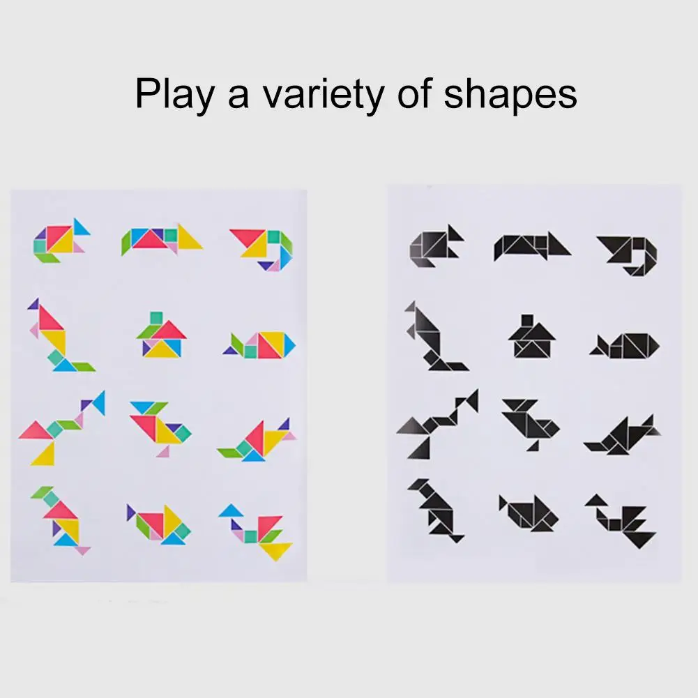 Детская Магнитная 3D геометрическая головоломка Танграм игра ранняя развивающая головоломка Характеристики: Изготовлен из древесного материала с экологически чистой краской, нетоксичен и без запаха. Тонкое мастерство, гладкая поверхность без заусенцев, руки не поцарапаются. Фотоальбом имеет различные узоры, помогают детям создавать разные формы. Стимулируйте воображение ваших детей, логическое мышление и практические способности. Название товара: геометрический пазл Материал: дерево Особенности: яркий цвет, тонкая работа, отличный подарок Размер магнитной платы: 22 см x 18 см x 2 см/8,66 дюйма x 7,09 дюйма x 0,79 дюйма (прибл.) Примечания: Из-за разницы в освещении и настройках экрана цвет изделия может немного отличаться от изображения. Возможны незначительные различия в размерах из-за различий в измерениях вручную. Посылка входит: 7 пазлов 1 фотоальбом 1 х Магнитная доска