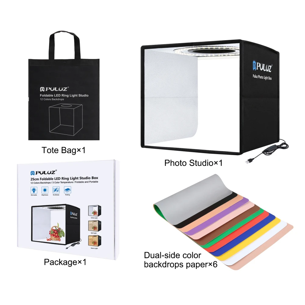 PULUZ 25 см Портативная фотостудия для студийной съемки палатки с 12 цветами фона, размер: 25 см x 25 см x 25 см