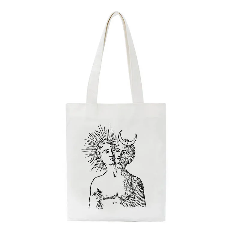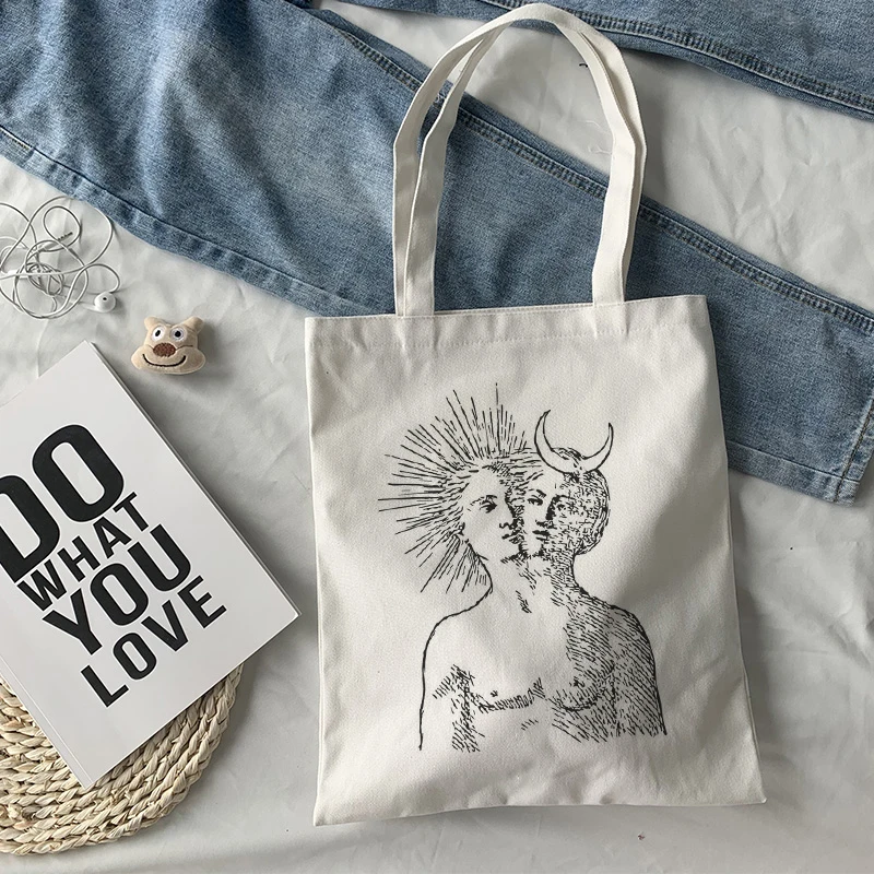 Повседневная женская сумка с принтом Sun myth, большая емкость, Новая Винтажная сумка для покупок в стиле Харадзюку, забавная женская наплечная сумка на молнии с мультяшным принтом