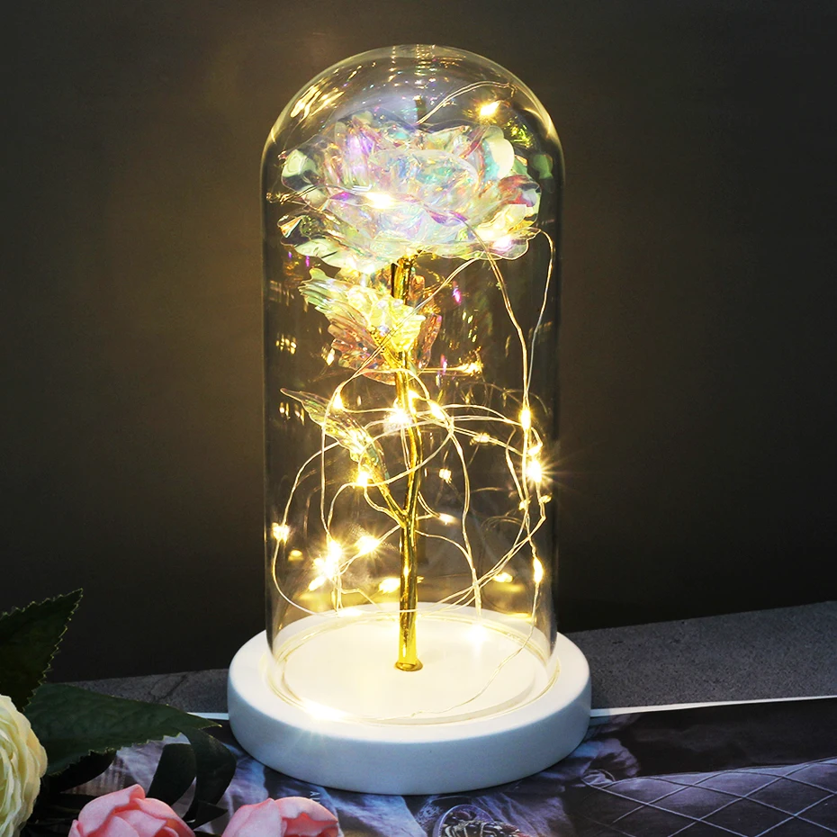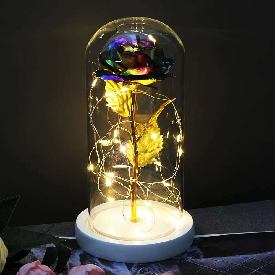 Искусственная вечная роза в стеклянном куполе Красавица и Чудовище галактика 24-каратный золотой цветок из фольги свадебный подарок на день Святого Валентина День Матери