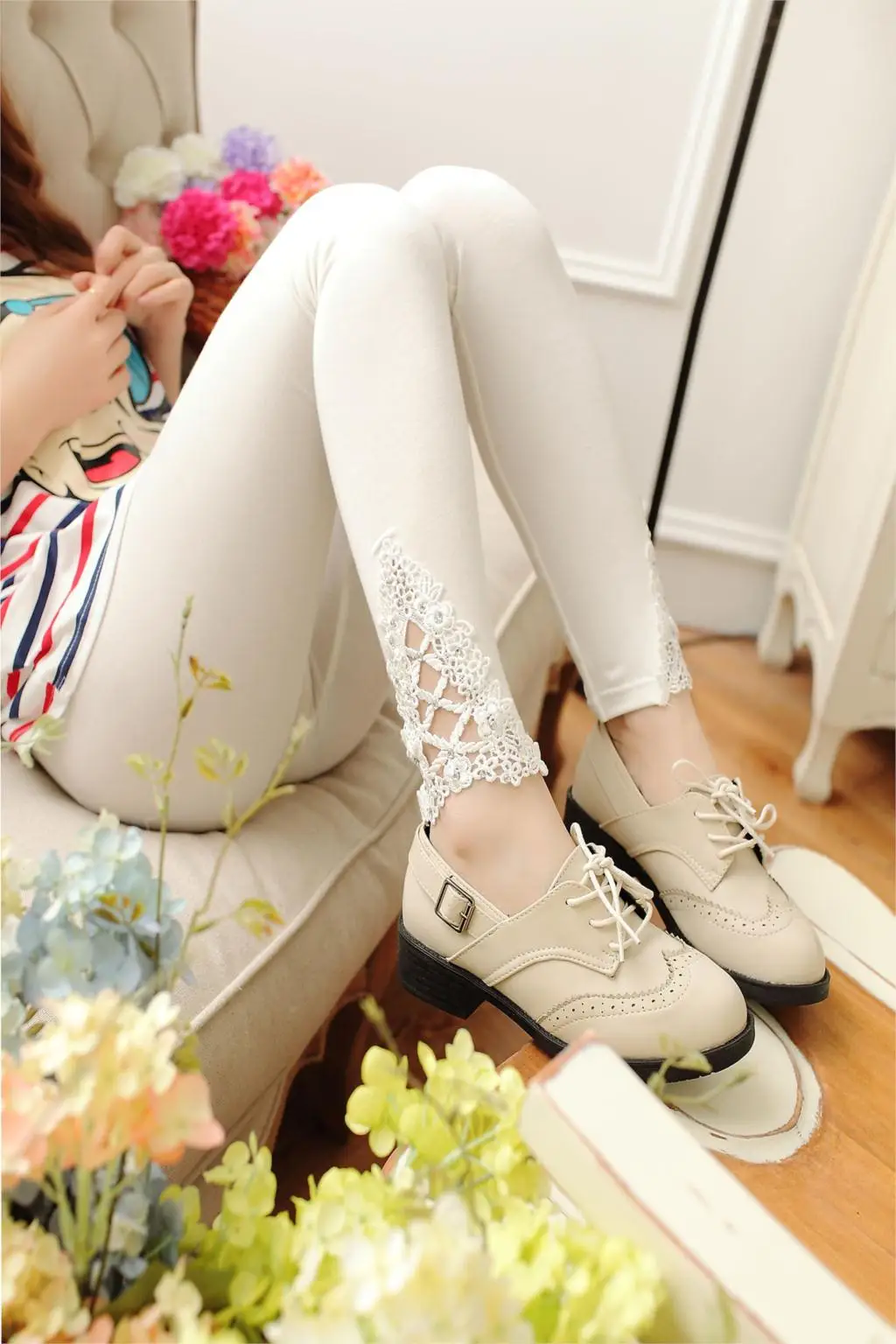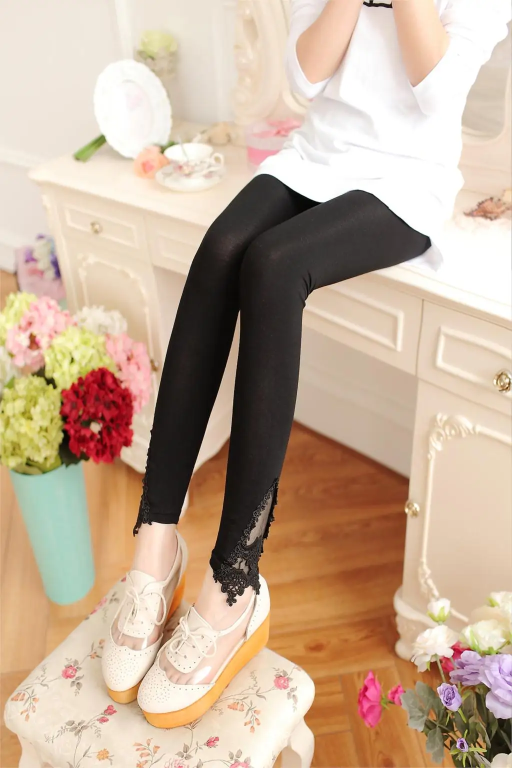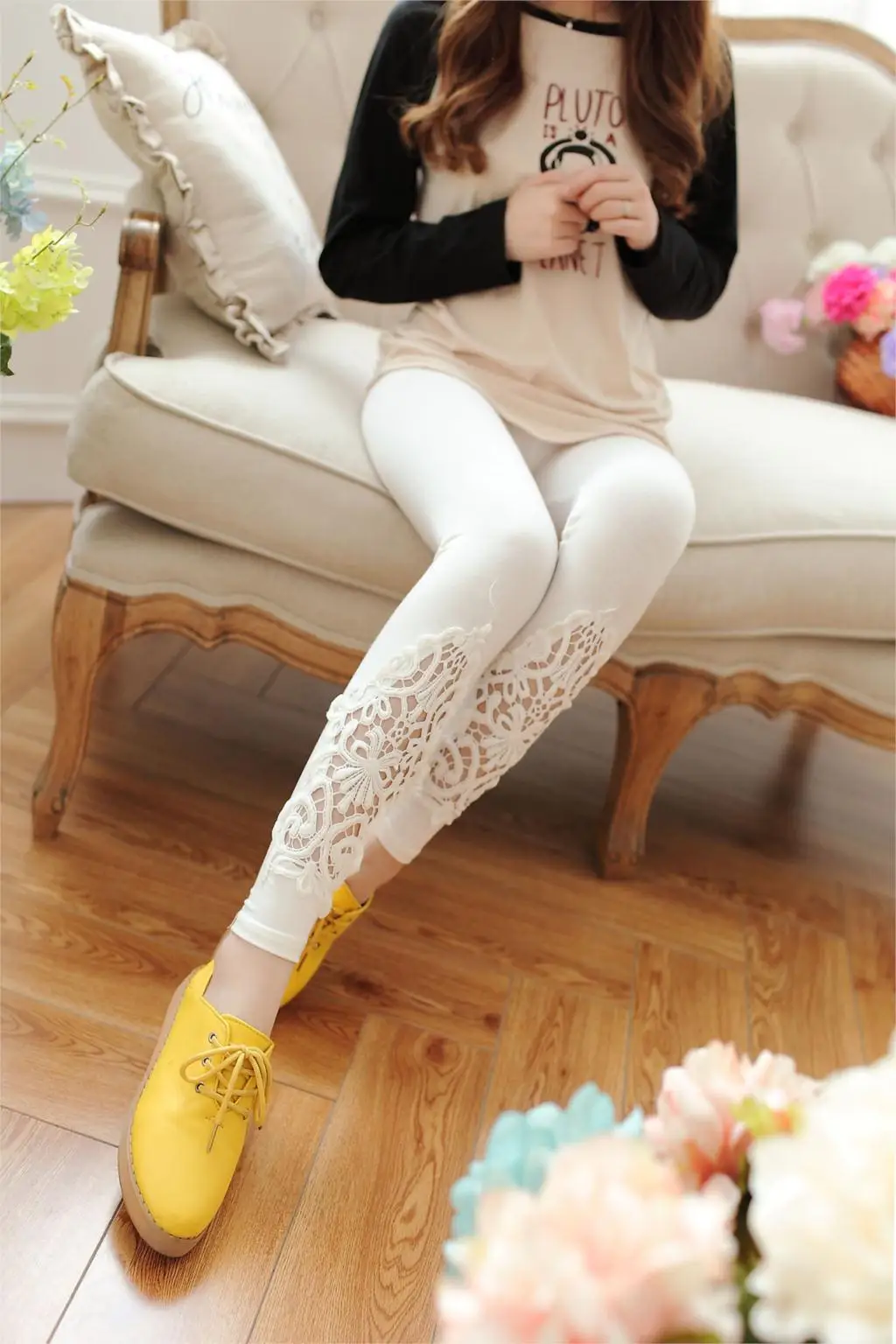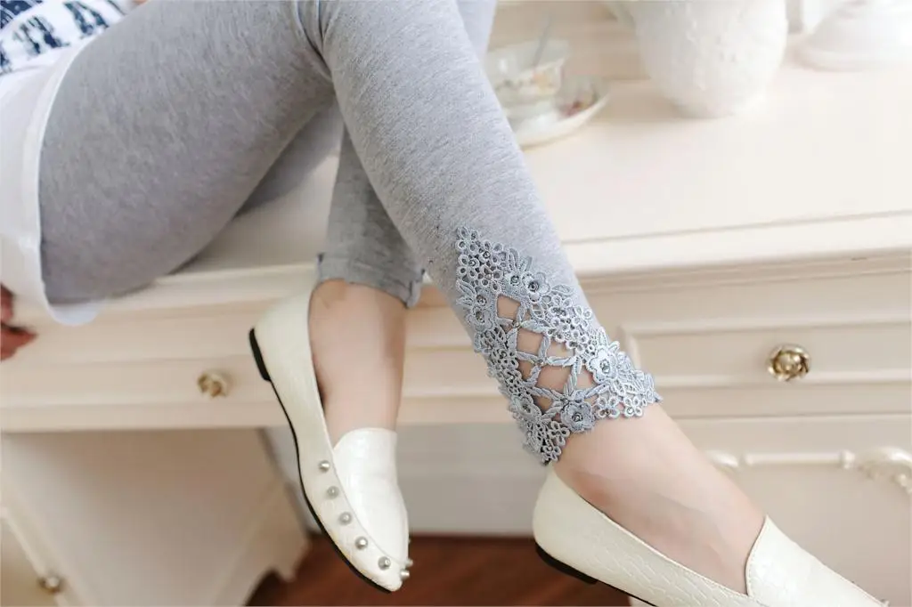Женские леггинсы CUHAKCI, трикотажные эластичные однотонные брюки с ажурным кружевом и бриллиантами, Новинка