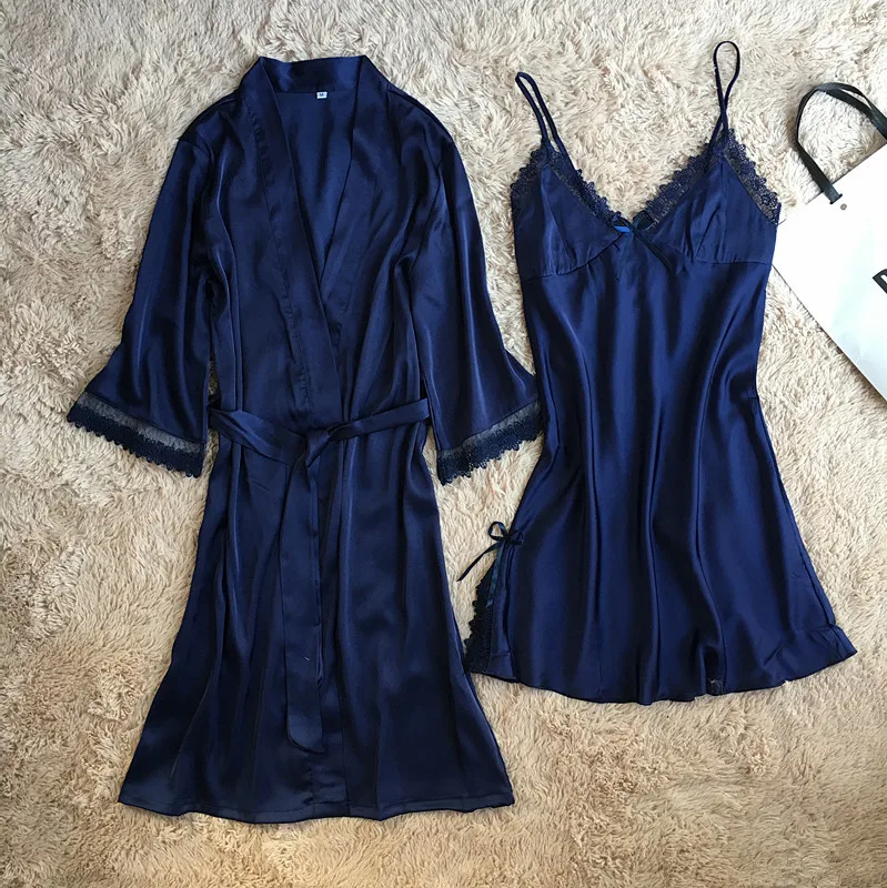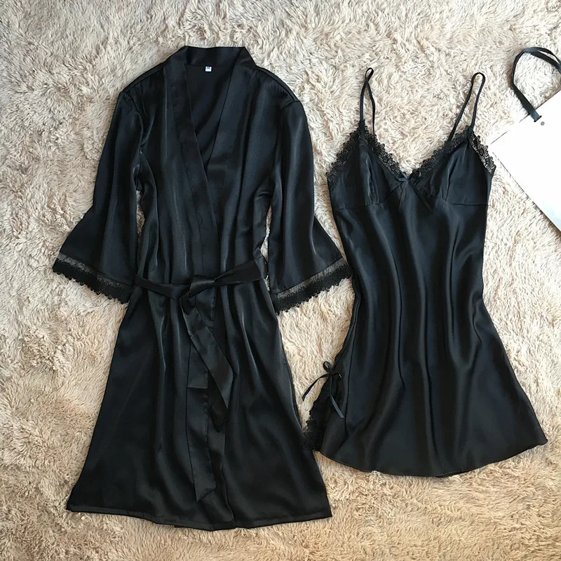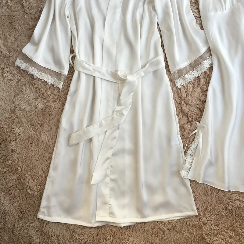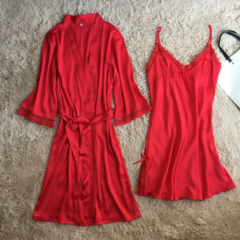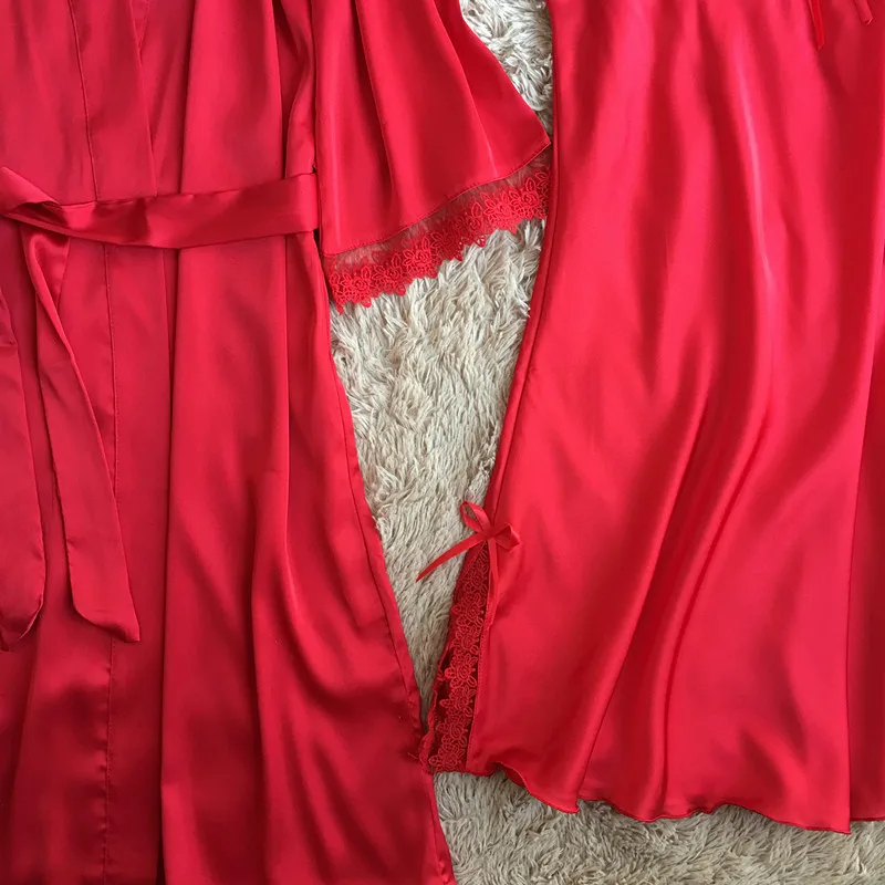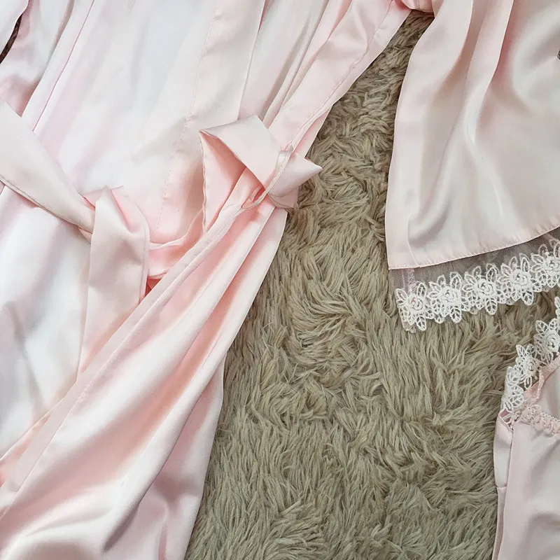 Комплект мягкого халата Женский, шелковая атласная ночная рубашка-кимоно, Свадебный халат, пикантное интимное нижнее белье, Свободная Домашняя одежда