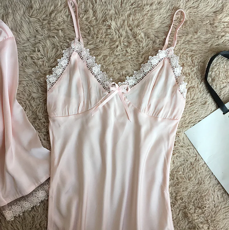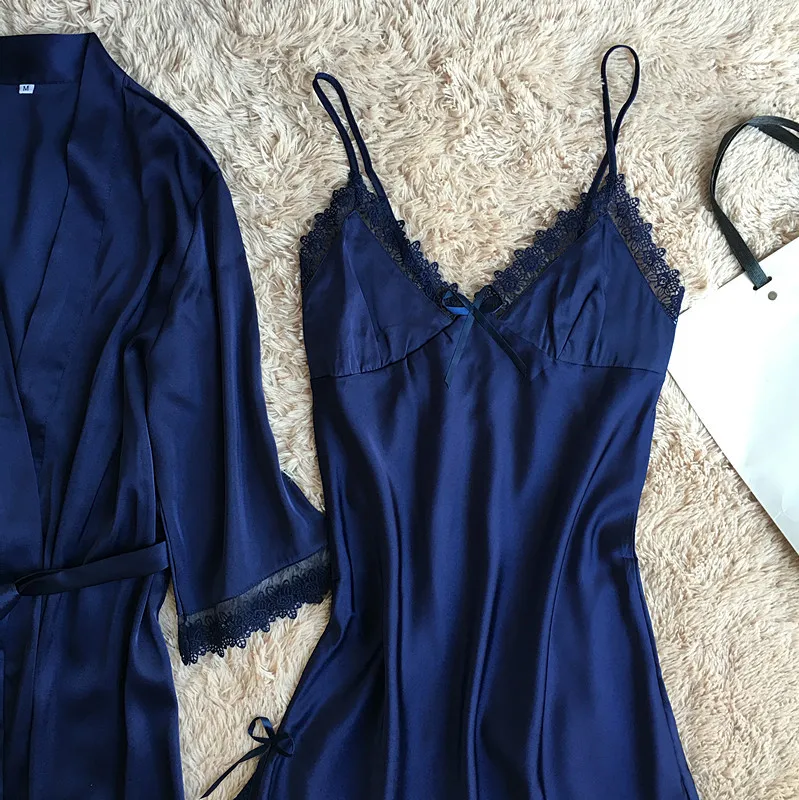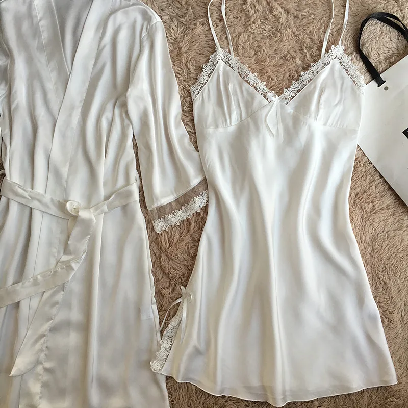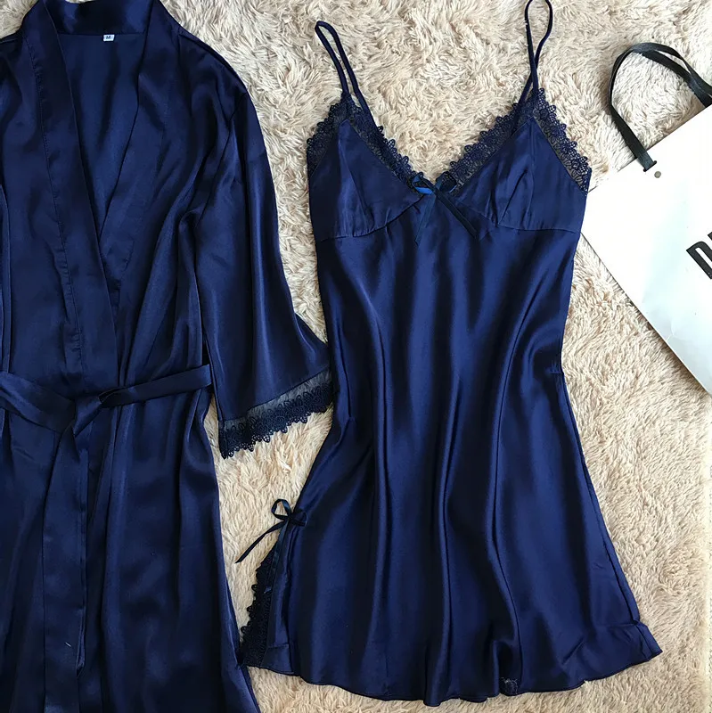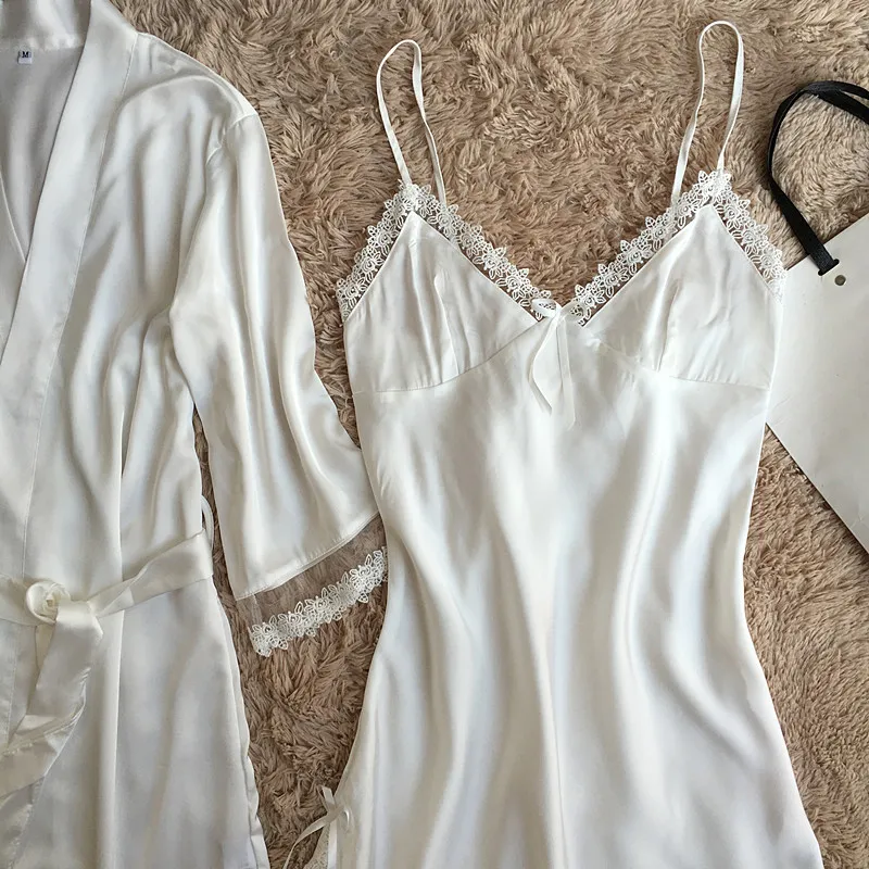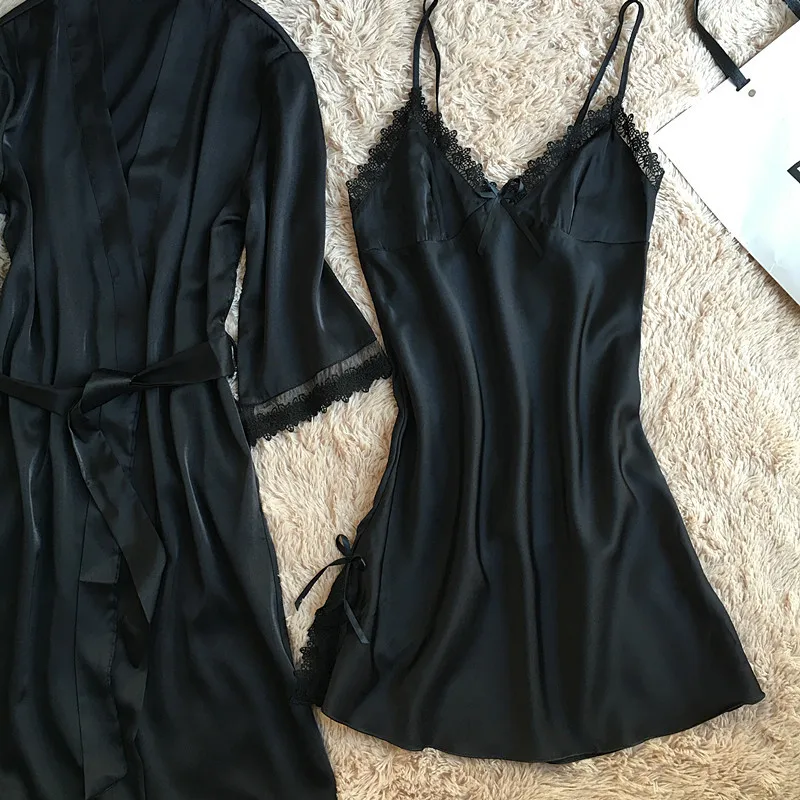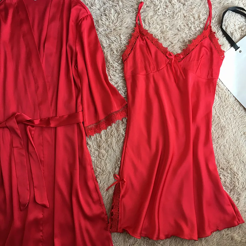 Комплект мягкого халата Женский, шелковая атласная ночная рубашка-кимоно, Свадебный халат, пикантное интимное нижнее белье, Свободная Домашняя одежда