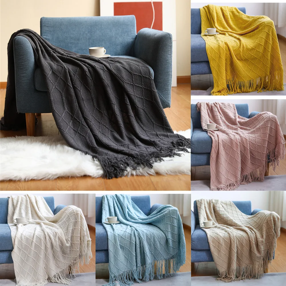 Плед с кисточками в скандинавском стиле, однотонное Клетчатое одеяло для дивана, для путешествий, зимнее теплое мягкое покрывало для сна и телевизора
