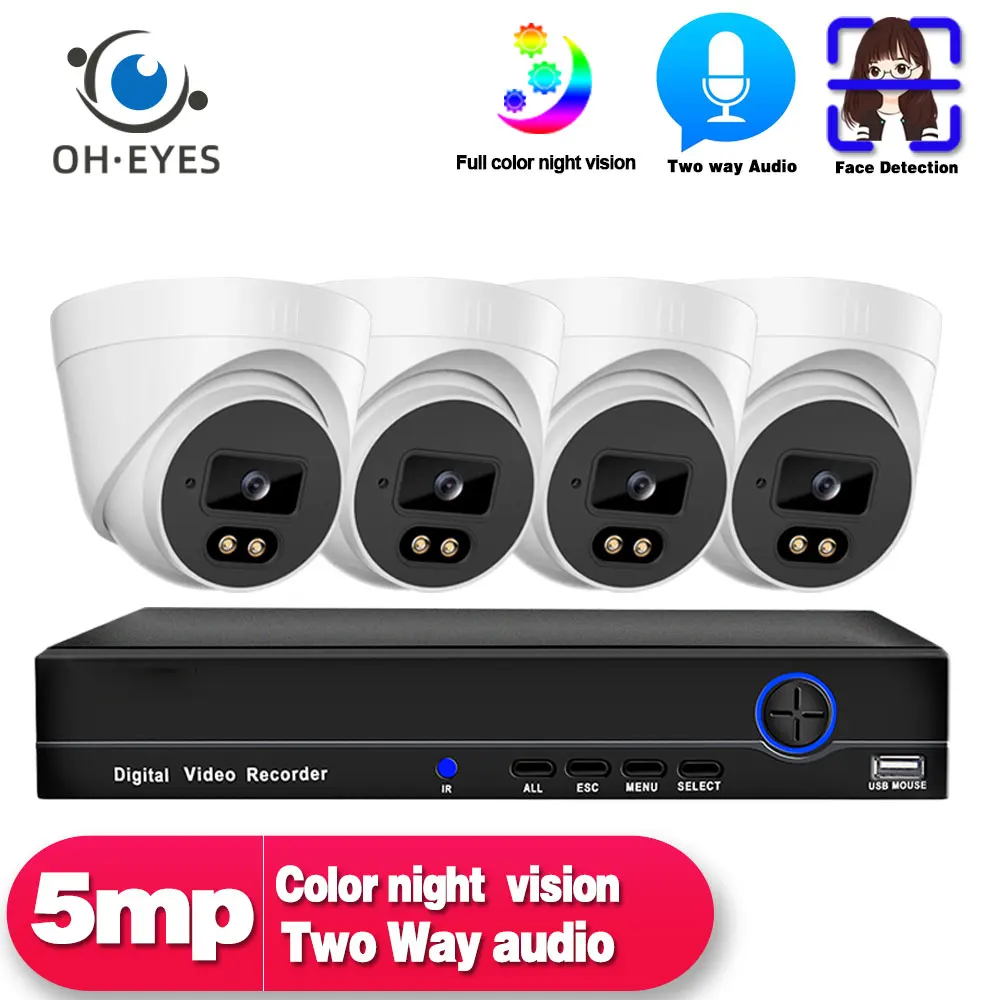 Система видеонаблюдения, H.265, 4 канала, 5 Мп, POE, NVR комплект камер видеонаблюдения, HD, IP-камеры, 5 Мп