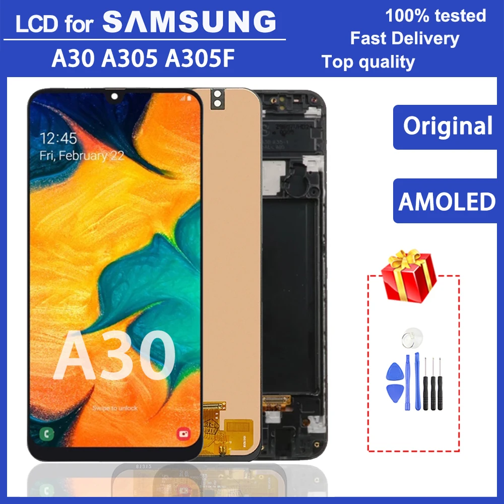 ЖК-дисплей 6,4 "Super AMOLED с дигитайзером в сборе, Оригинальный сенсорный экран для Samsung Galaxy A30 A305DS A305F A305FD A305A