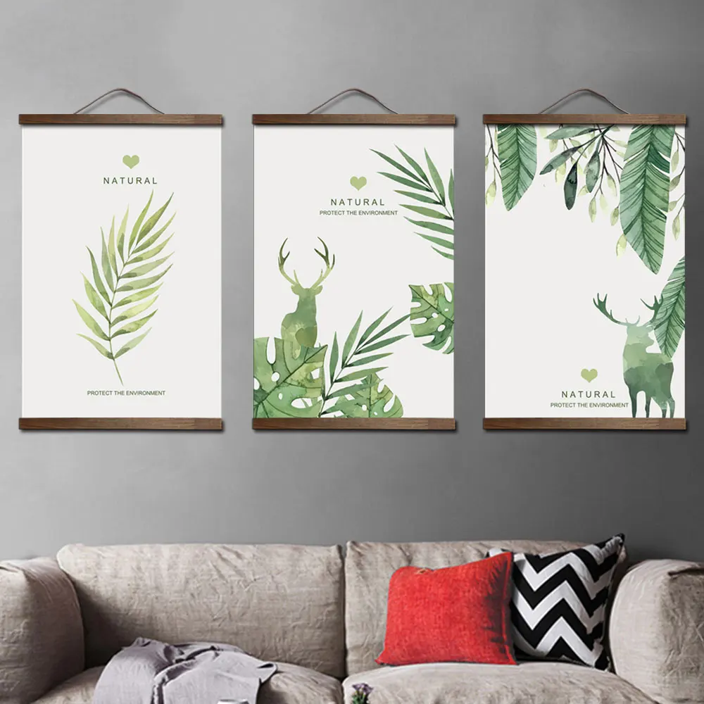 Изготовленный на заказ в скандинавском стиле в виде зеленых растений декоративная картина на холсте магазин спальня гостиная стены искусства из цельного дерева, древний свиток, живопись