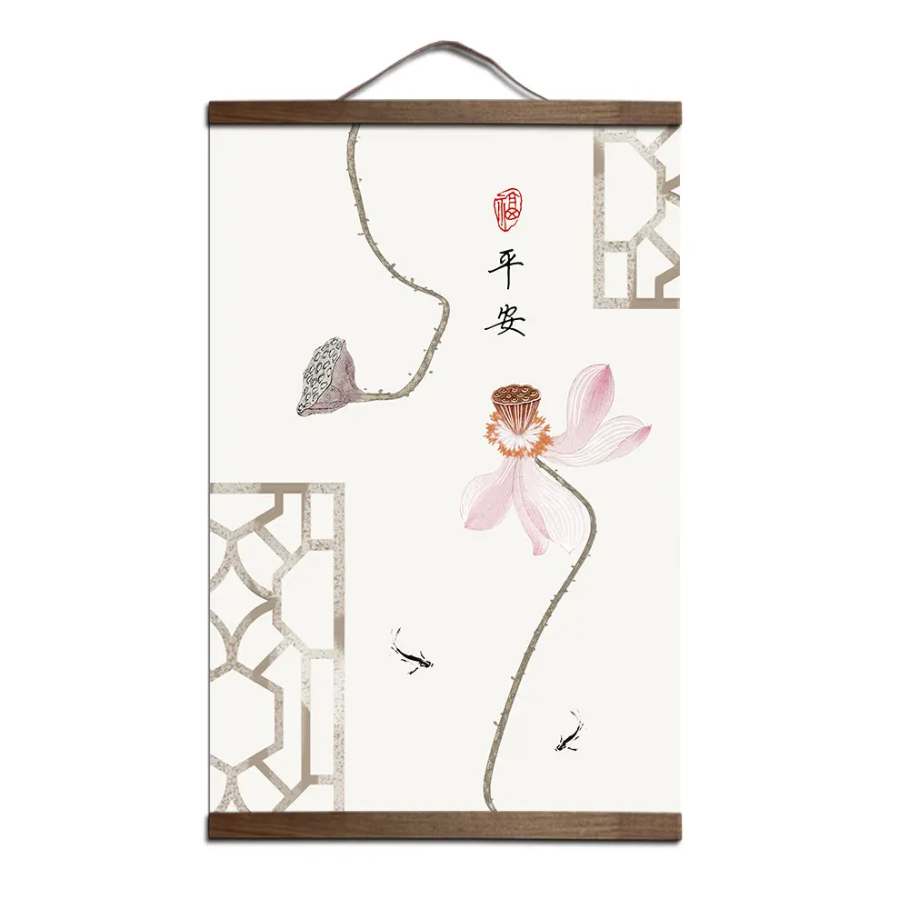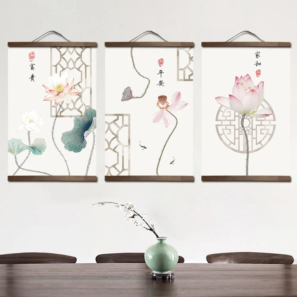 В китайском стиле лотоса зелеными растениями декоративная картина на холсте магазин спальня гостиная стены искусства твердой древесины прокрутки картины