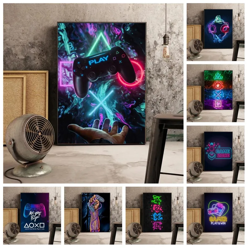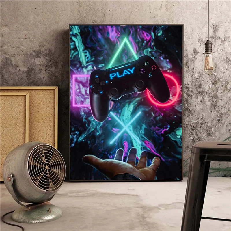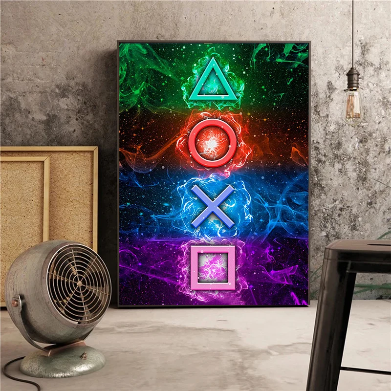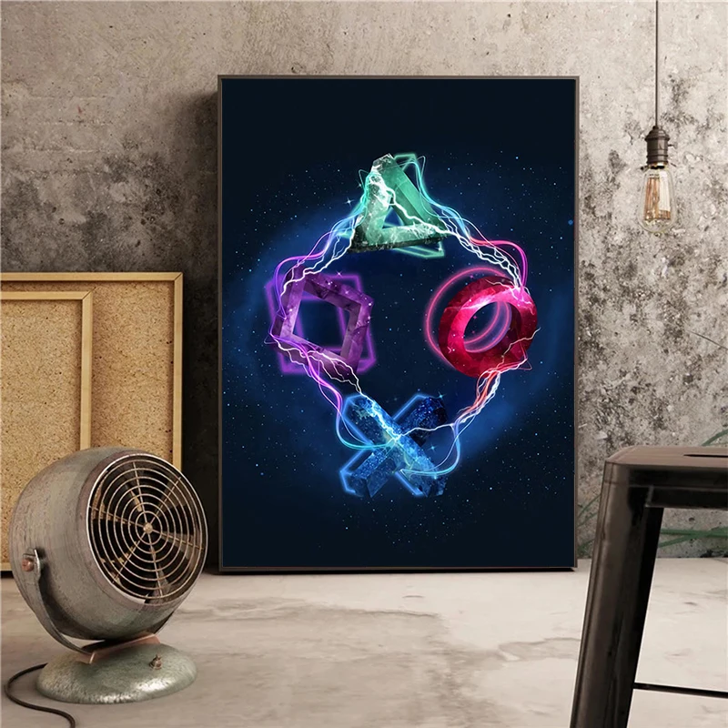 Игровая Картина на холсте, ретро геймпад, джойстик, символы, Постер и печать, настенные картины для гостиной, настенное украшение