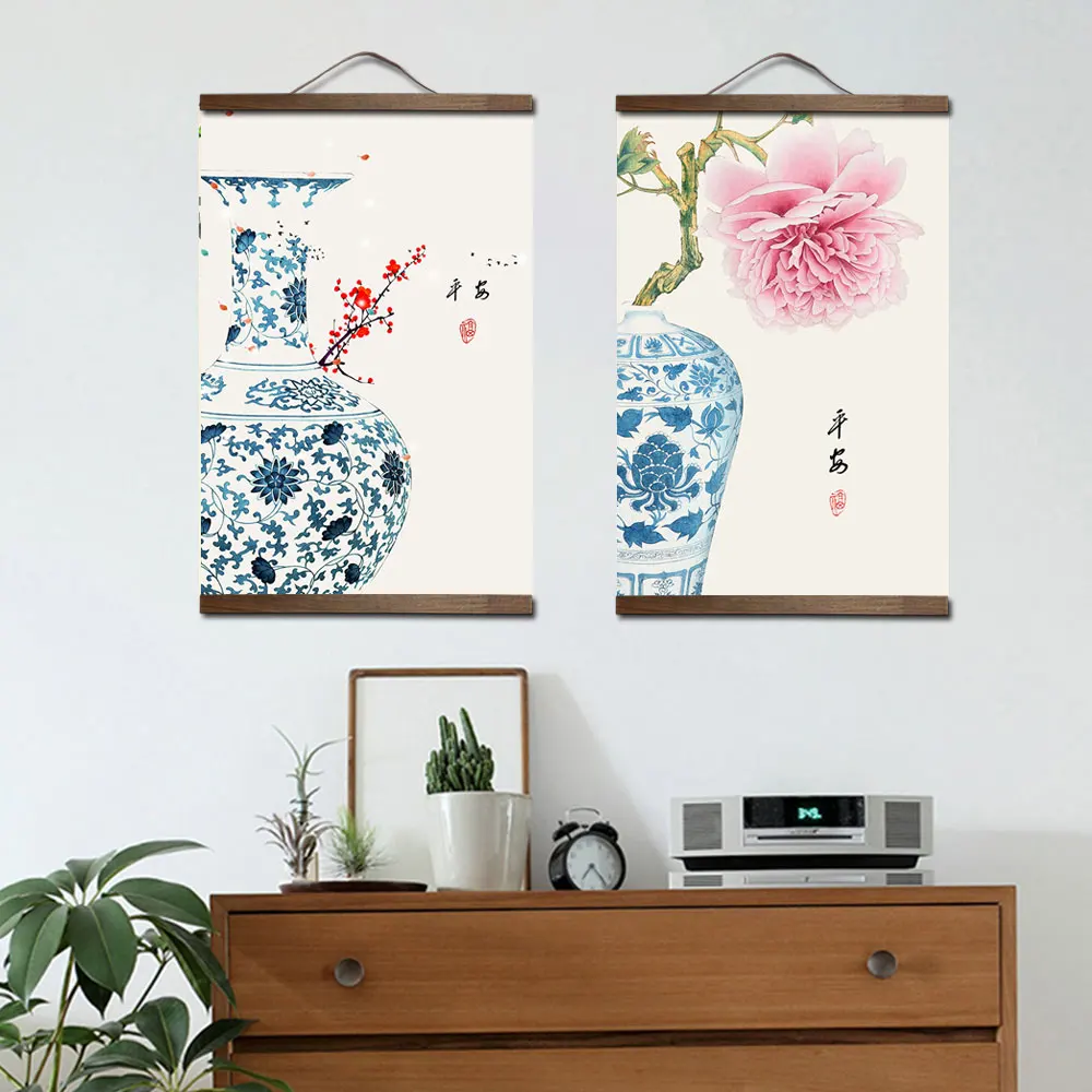 Китайская классическая стильная древняя Картина на холсте, Постер, настенное искусство с деревянными вилками для гостиной, винтажный Декор для комнаты