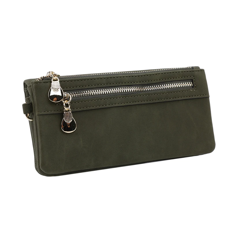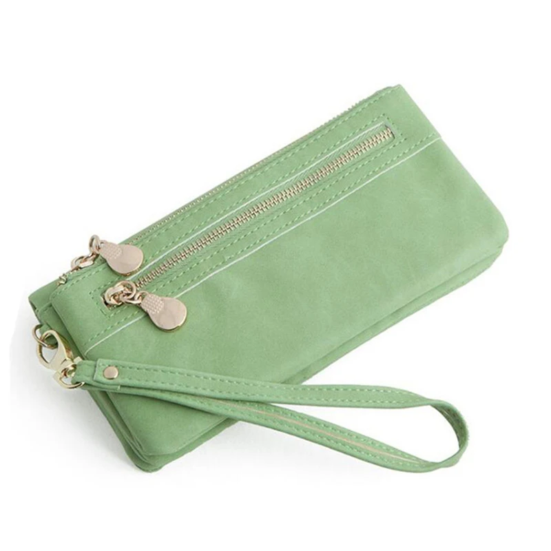 Модные женские кошельки, Матовый кожаный кошелек с двойной молнией,...