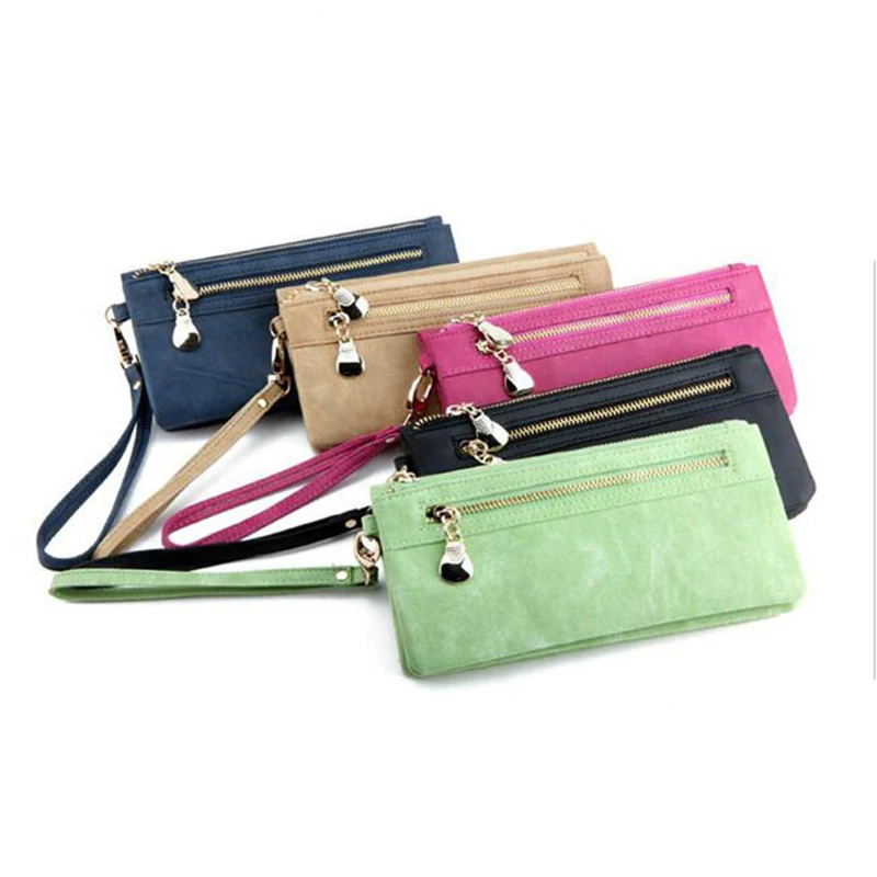 Новые женские кошельки на молнии, Женский кошелек, Женская однотонная сумка на запястье, держатель для денег, клатч, Длинные кошельки с несколькими отделениями для карт