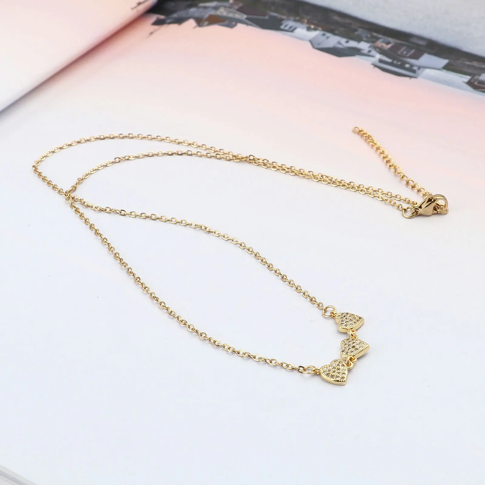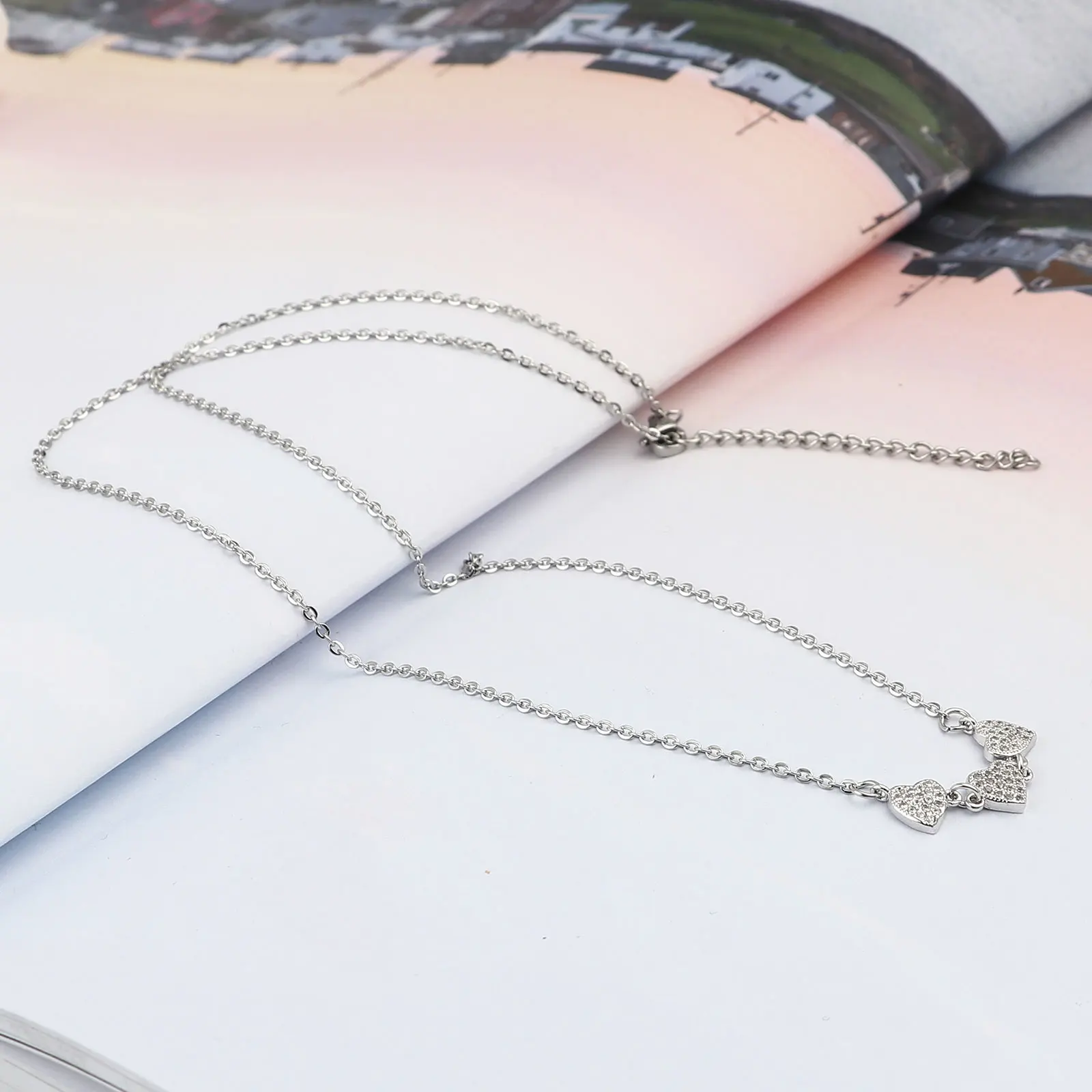 Ожерелье с подвеской, цепочка из звеньев на День святого Валентина, ожерелье с сердечком и микрозакрепкой из прозрачного кубического циркония, подарок для женщин и мужчин, 1 шт.