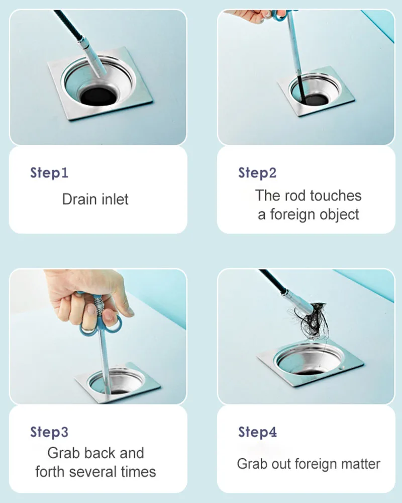 * Сливная змея и сливной засоритель сделаны из сверхпрочной экологически чистой пластиковой конструкции, чтобы обеспечить отсутствие поломки и максимальную гибкость при использовании. Устройство для удаления засоренных волос создано для повседневного использования.