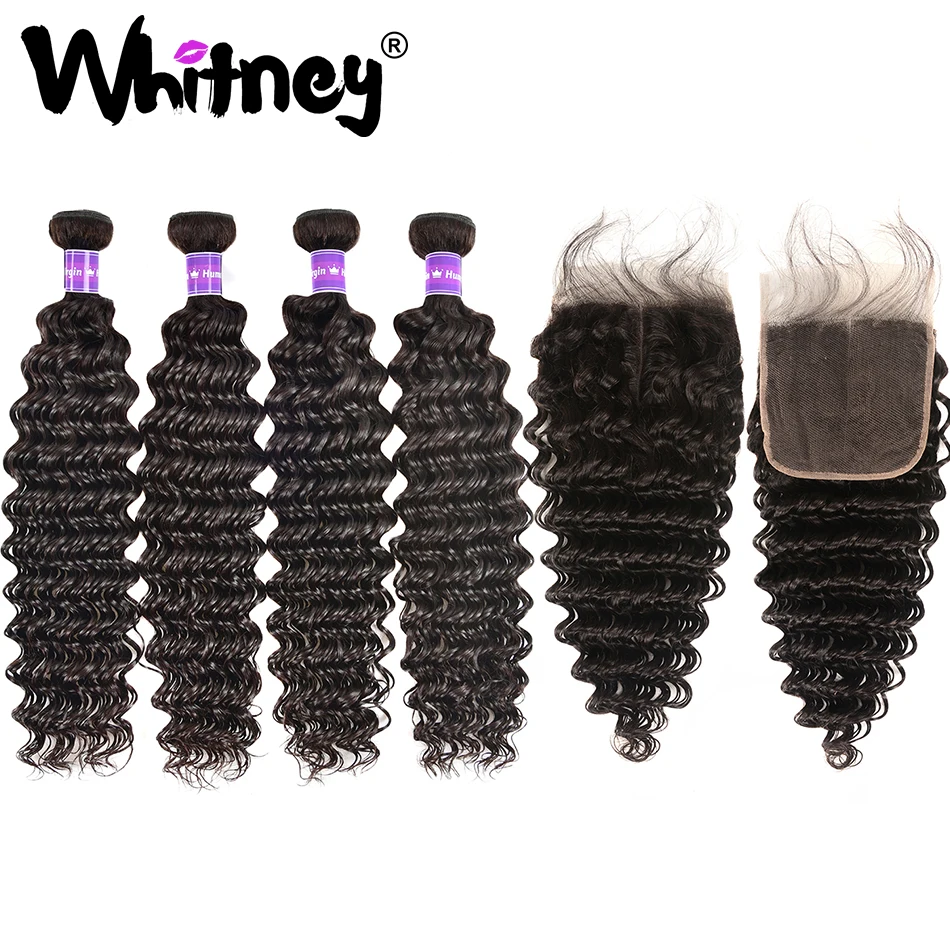 Whitney Малайзии глубокая волна пряди с фронтальной Кружева Закрыти...