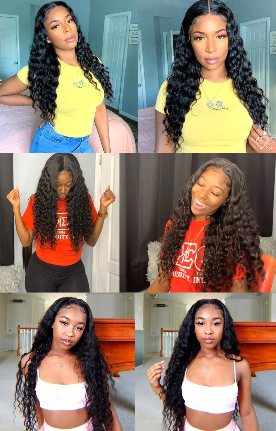 Прозрачные кружевные пряди глубоких волн с фронтальной 100% Реми че...