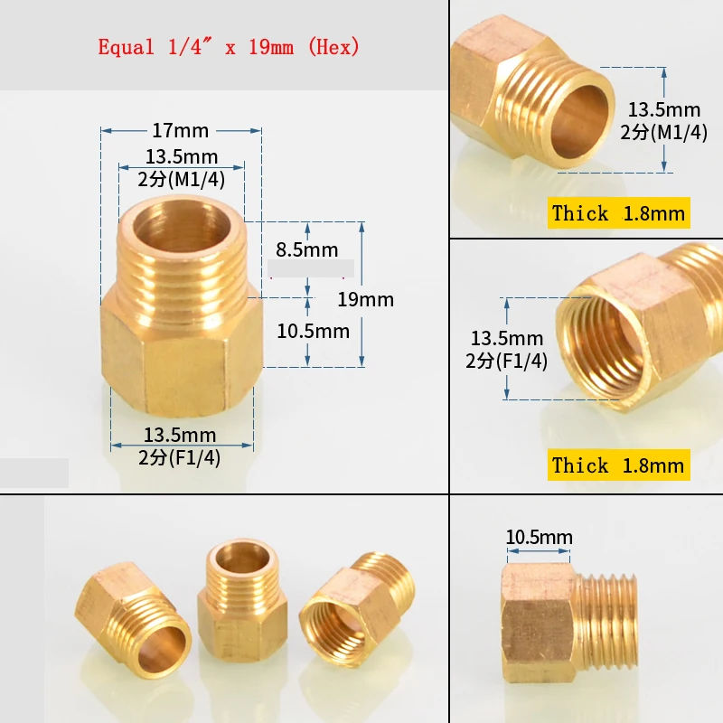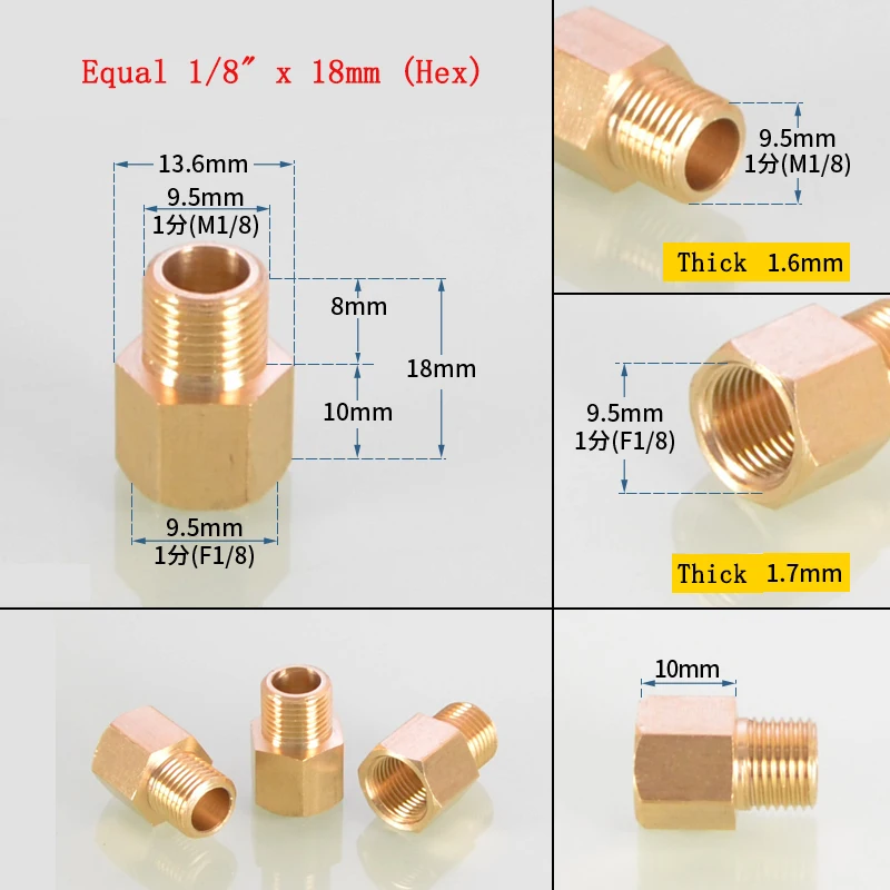 Латунь 18 14 38 с внутренней резьбой на внутреннюю шестигранную рез...