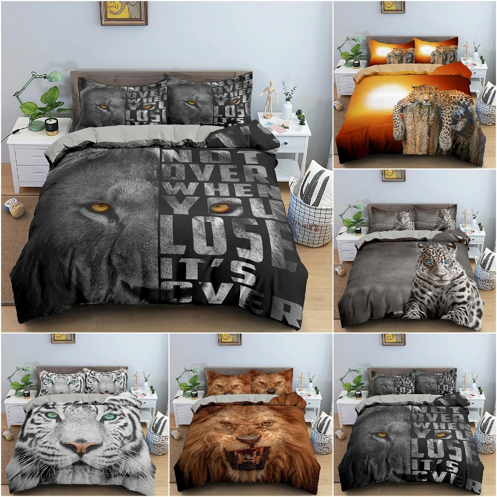 Комплект с пододеяльником с животными, львом и комплект для кровати с принтом Тигр, домашний текстиль, наволочка, королева, король, постельное белье, украшение для спальни