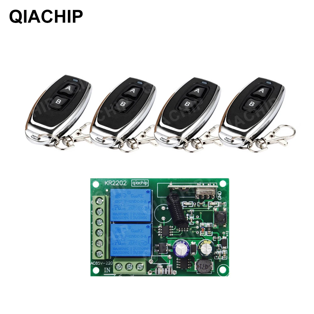 Беспроводной пульт дистанционного управления QIACHIP 433 МГц 220 В 2CH 10A релейный модуль приемника RF Realy передатчик с дистанционным управлением 433 МГц