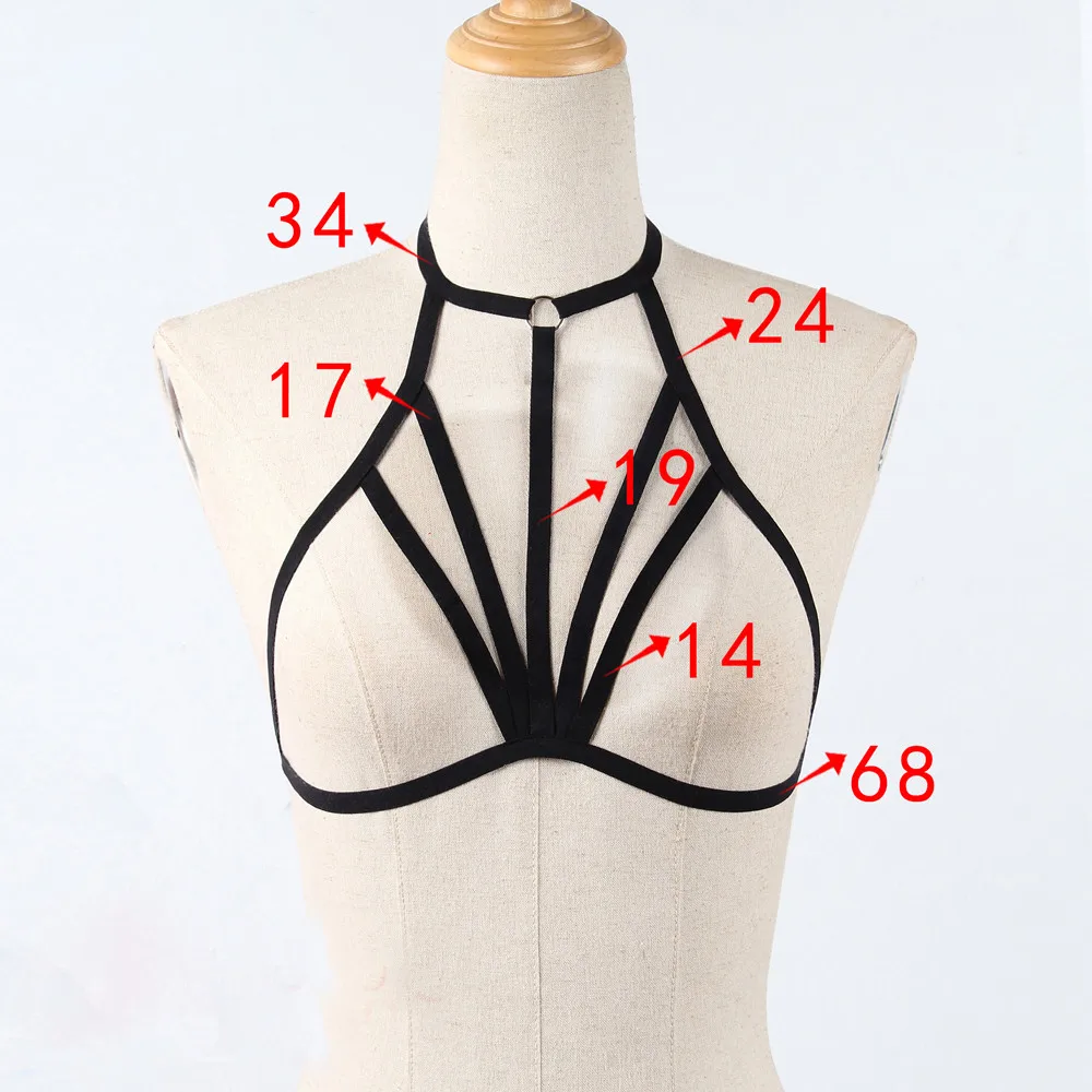 Пикантные Для женщин готика короткое дамское ожерелье эластичный Кейдж бюстгальтер нижнее белье для бондажа открытые сандалии с ремешками бюстгальтер клетка укороченный топ Cupless бюстье нижнее бельё для девочек