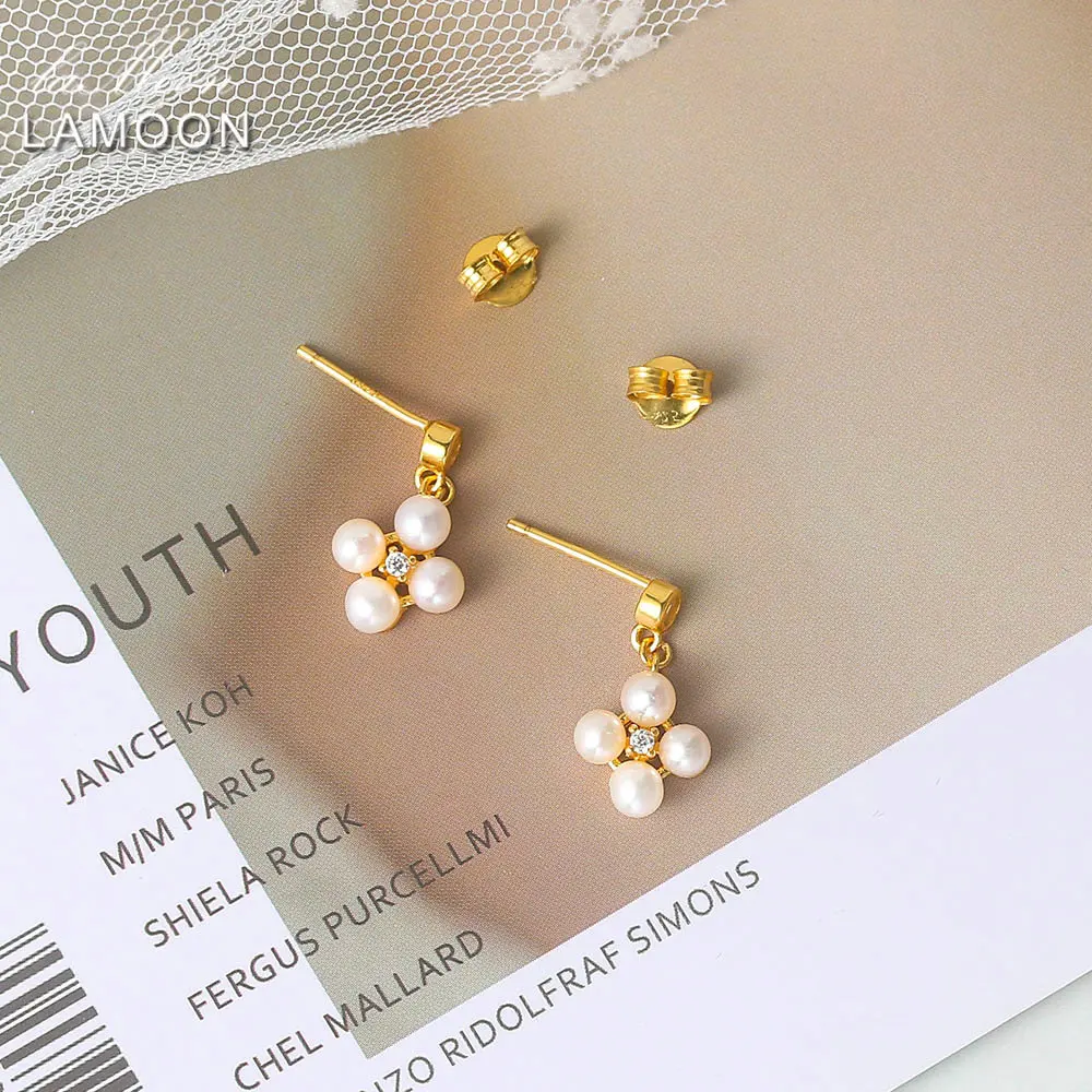 LAMOON S925 серебро жемчужный набор украшений для женщин из натурального пресновдного жемчуга 14K позолоченные Свадебные обручальные кольца ювелирные украшения V073
