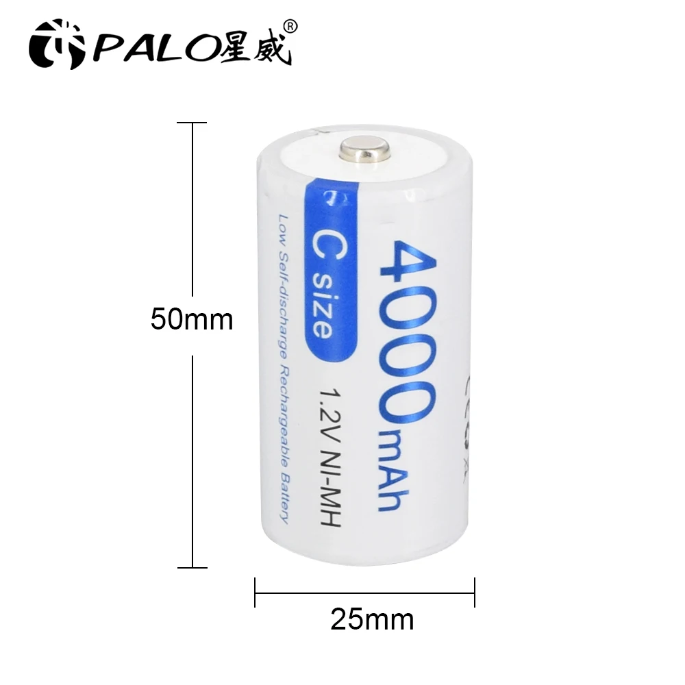 Аккумуляторная батарея PALO, 1,2 в, Ni-MH C, 4000 мАч, R14, Тип C, батарея LR14, низкий саморазряд, перезаряжаемая батарея C