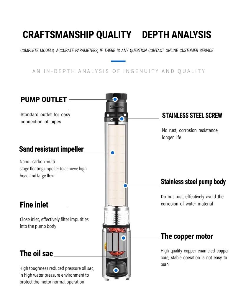 1. Бесщеточный синхронный двигатель постоянного тока с постоянным магнитом.2. Латунная розетка/Соединитель/цилиндр.3. Срок службы японских подшипников NSK будет увеличен в 3-5 раз.4. Двухподшипниковое основание двигателя может работать под большим осевым давлением.5. Механическое уплотнение из сплава【Более длительный срок службы и более высокая надежность. 】6. Двигатель из чистой меди:【Вперед и обратная защита, подключайте обратно без сжигания7. Интеллектуальная защита от нехватки воды8. Защита от перенапряжения/низкого напряжения【When слишком высокое напряжение или вязкость полимера слишком мала, насоса автоматически перестанет работать избыточного напряжения каждые 10 минут и автоматически начнет работать между 18v-45v. 】9. Запатентованная технология【Обновление внутренней водонепроницаемой и теплоизоляционной системы 】10. Контроллер MPPT【Может производить лучшую солнечную энергию 】