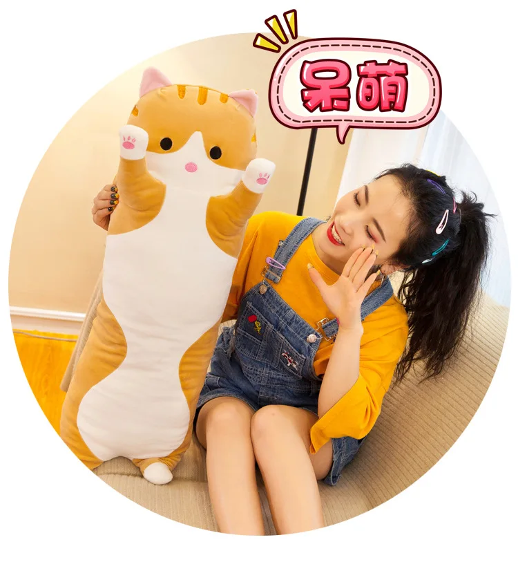 Симпатичная мягкая длинная подушка в виде кошки для парня, плюшевые...
