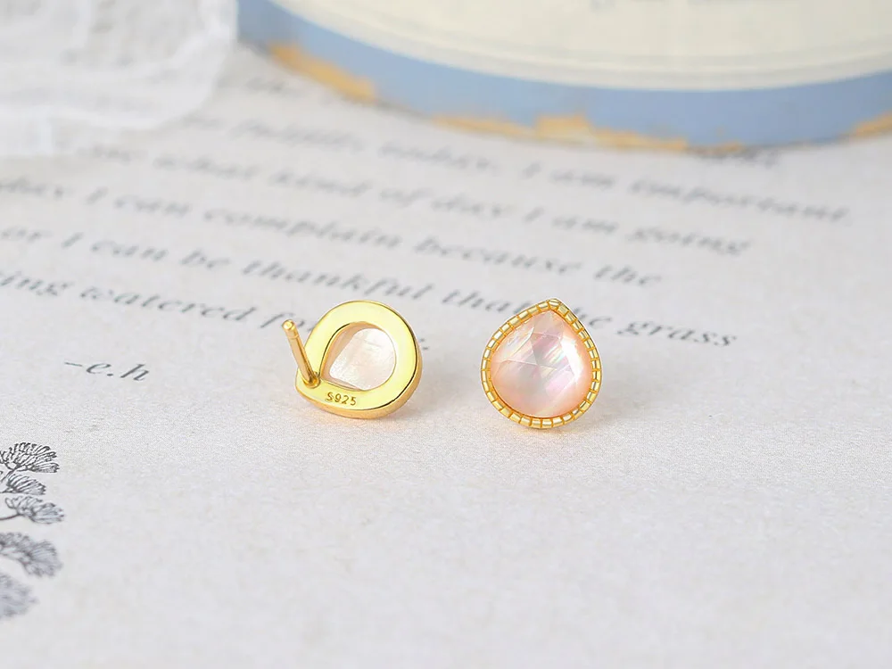 LAMOON сладкий розовый персик набор украшений для женщин и девочек 925 серебро, белый натуральный розовый кристалл оболочки 14K позолоченные жемчужные серьги, хорошее ювелирное изделие, V085