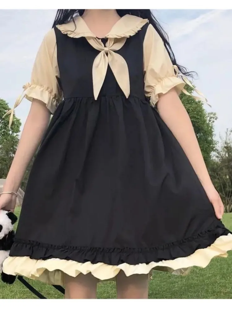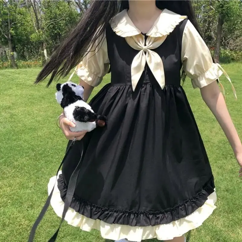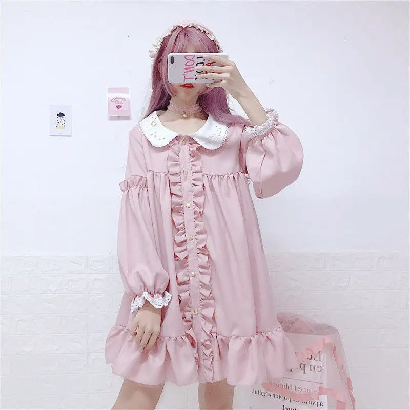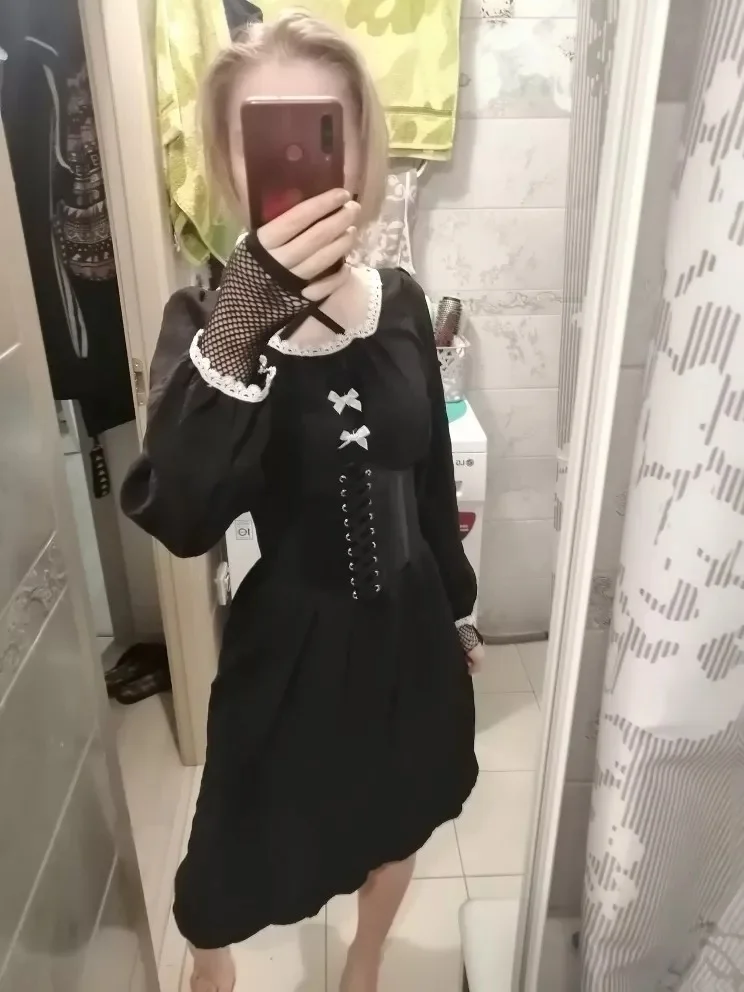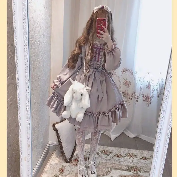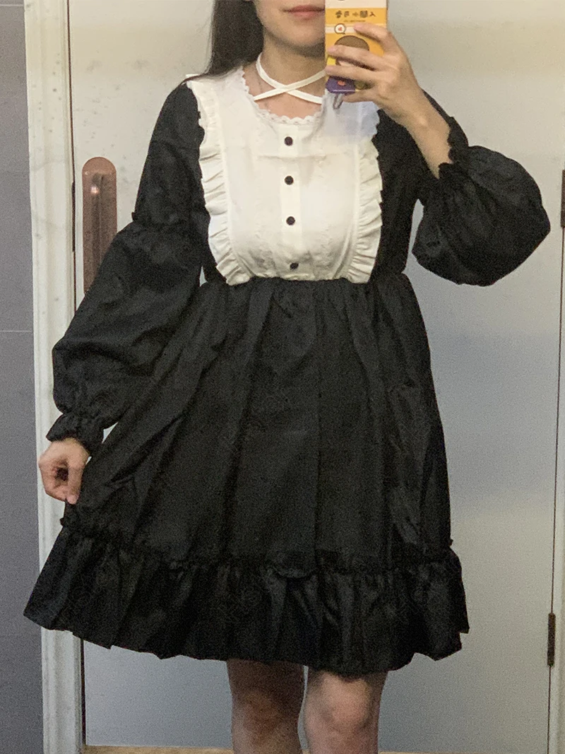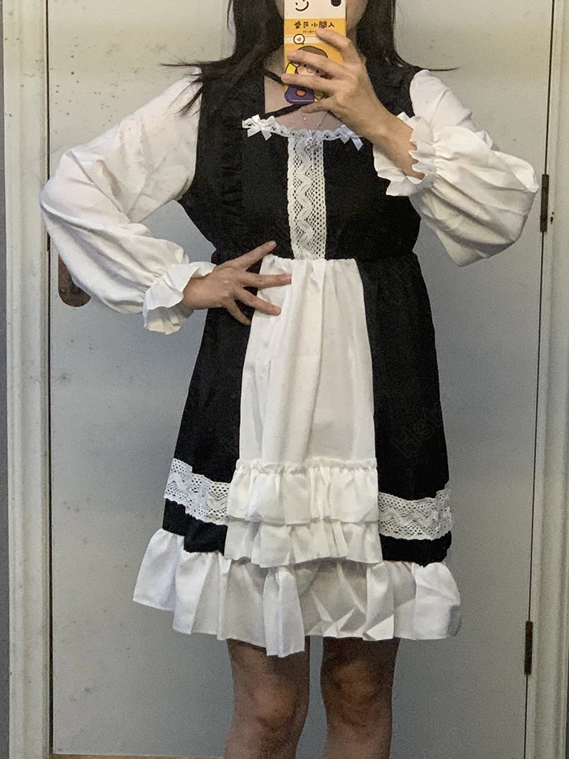 Милое женское платье в стиле "лолита", платье в японском стиле Харадзюку, платье в викторианском стиле с длинными рукавами, платья, Готическая лолита, косплей, горничная лолита