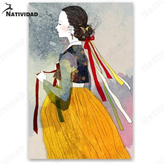 Корейская Классическая традиционная одежда художественная живопись картина печать плакат ретро канв...