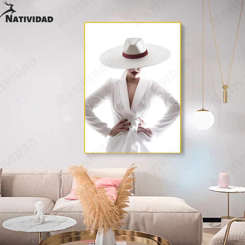 Домашний декор, постер, современная модель, одежда, простой костюм и шляпа, рисунок, художественный принт, для жизни...
