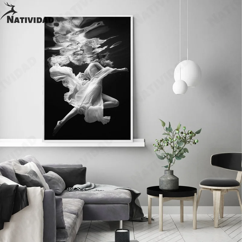 Подводный балет Танцующая девушка печать плакат декоративные принты настенная живопись Норд...