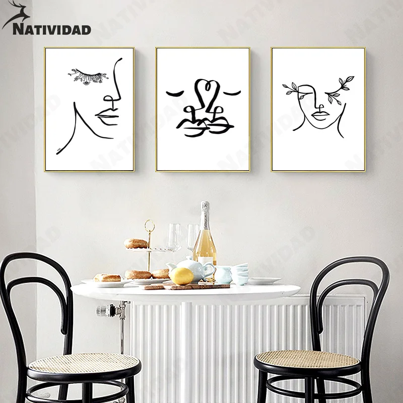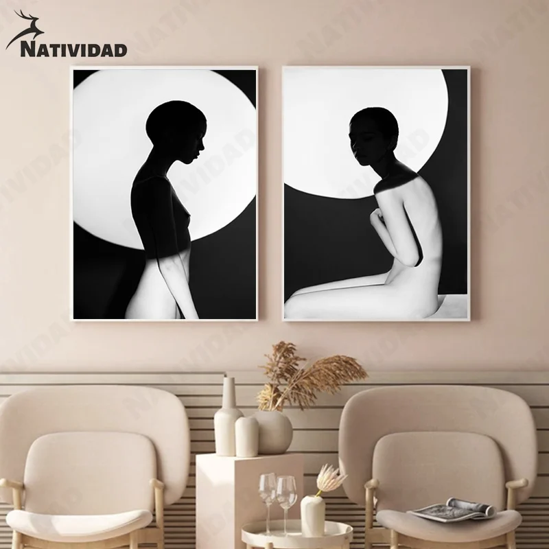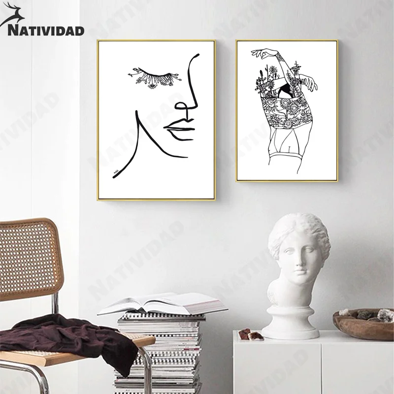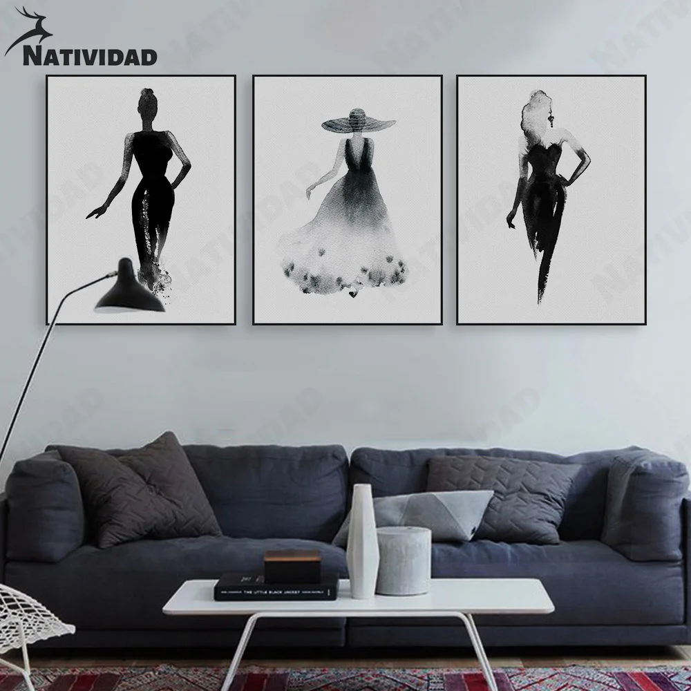 Белый и черный женский художественный постер на стене для украшения гостиной...