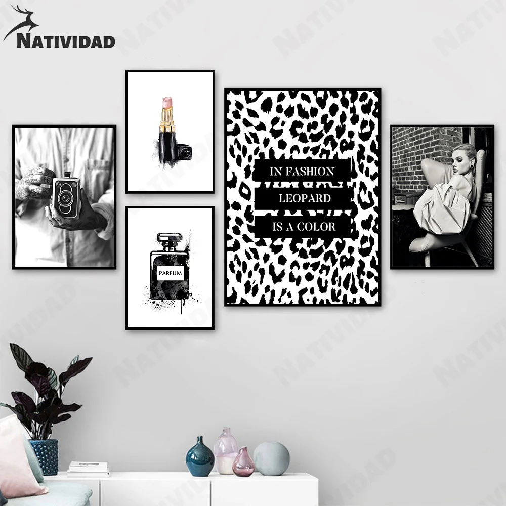 Черно-белый постер с принтом для девушек, холщовая живопись, модное настенное искусство, п...