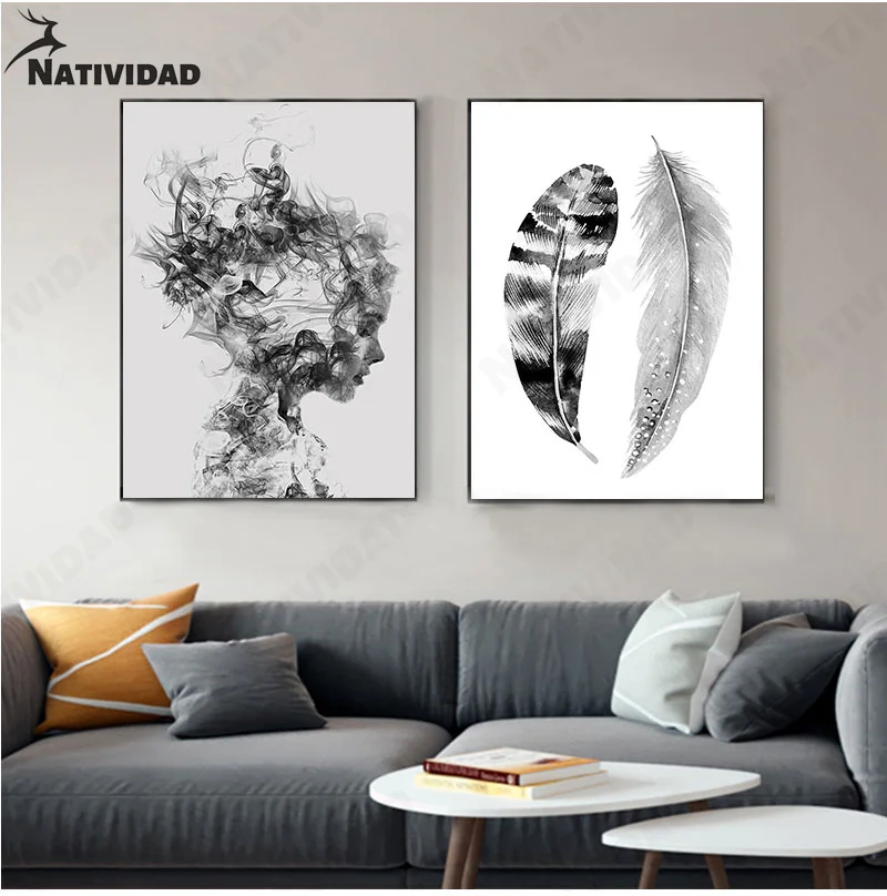 Абстрактный декоративный дым девушка перо картина печать плакат настенное искусство скандинавский режим...