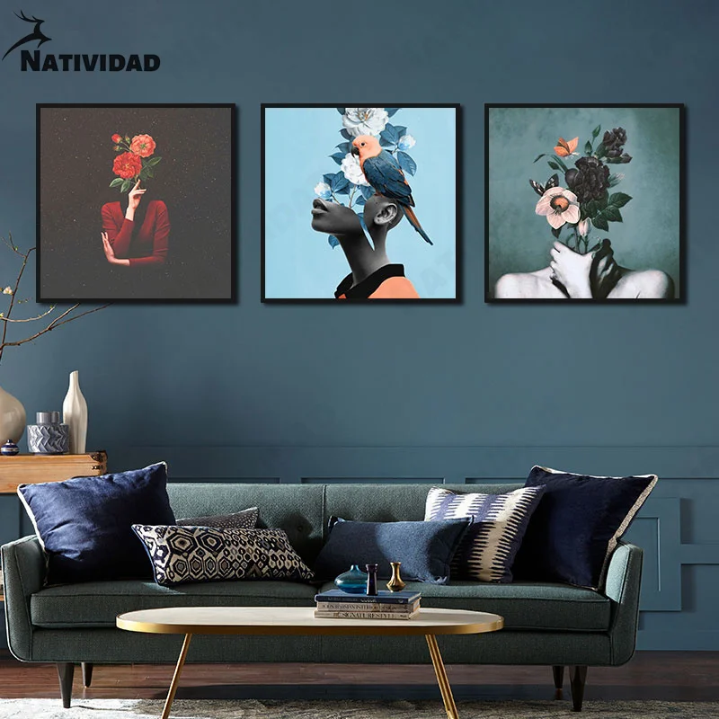 Девушка цветок совпадающая картина стены искусства холст картина скандинавские плакаты и принты...