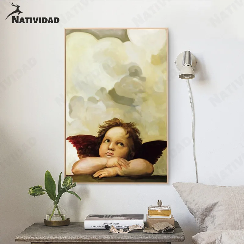 Винтажная картина маслом портрет маленький Ангел холст картина Современные плакаты и ПР...